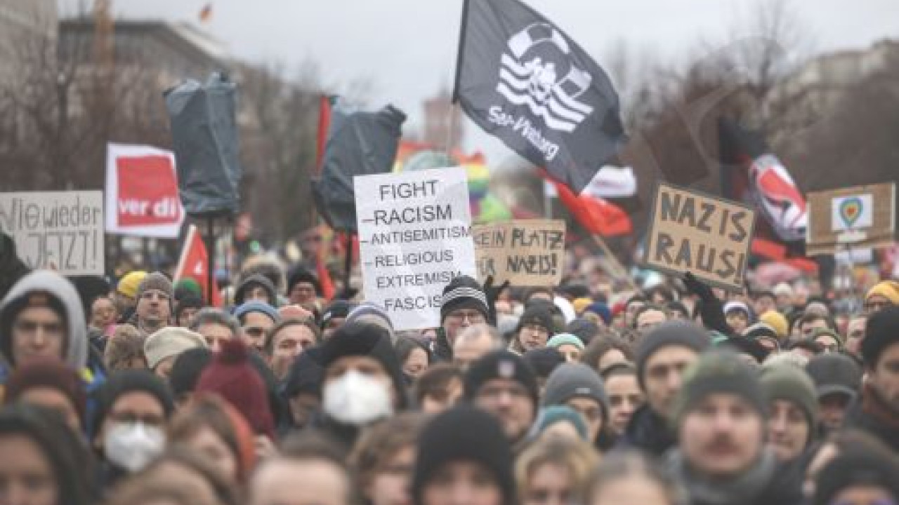 Περισσότερα από 25.000 άτομα διαδήλωσαν νωρίτερα απόψε κατά της Εναλλακτικής για τη Γερμανία (AfD) στην Πύλη του Βραδεμβούργου, στο Βερολίνο, εκφράζοντας την οργή τους μετά την αποκάλυψη ότι τον περασμένο Νοέμβριο στελέχη του κόμματος συναντήθηκαν με εκπροσώπους νεοναζιστικών οργανώσεων προκειμένου να συζητήσουν το «στρατηγικό σχέδιο» δια της βίας απέλασης τουλάχιστον δύο εκατομμυρίων μεταναστών. Ανάλογες διαδηλώσεις πραγματοποιήθηκαν και σε άλλες πόλεις, ενώ σε αυτήν του Πότσνταμ, της εκλογικής τους περιφέρειας, έδωσαν το «παρών» ο καγκελάριος Όλαφ Σολτς και η υπουργός Αναλένα Μπέρμποκ.