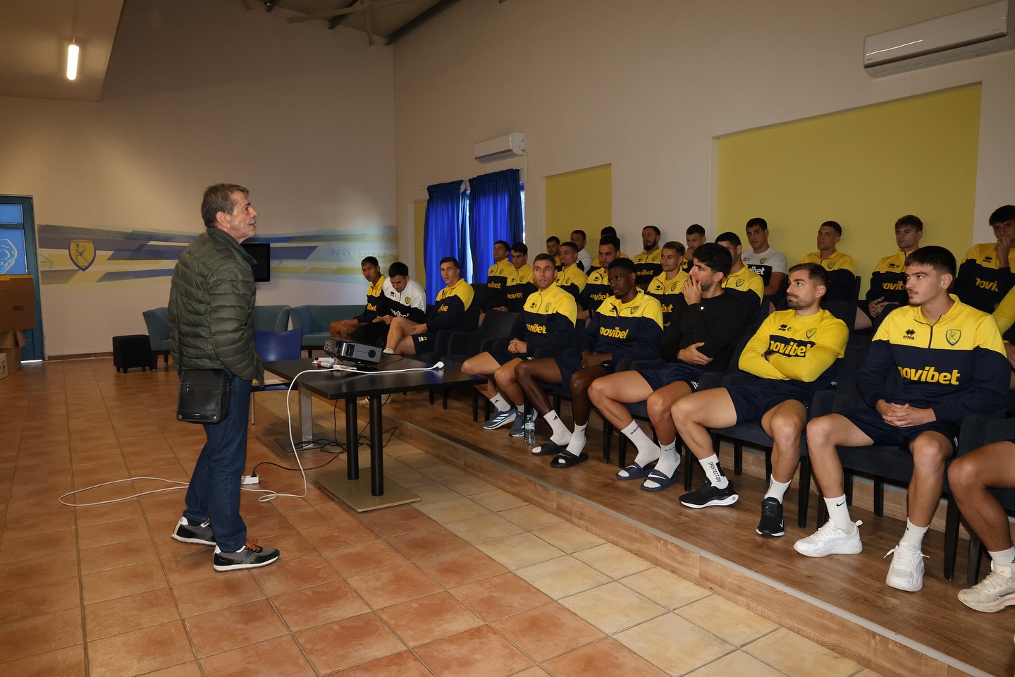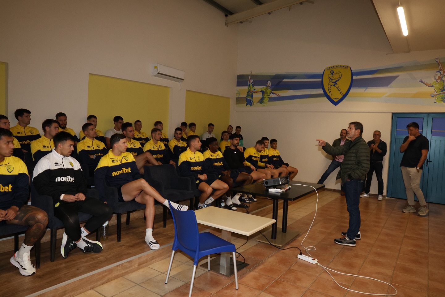 Τον πολύπειρο Κρητικό προπονητή υποδέχτηκε ο νέος προπονητής του συλλόγου, Γιάννης Αναστασίου, ενώ στη συνέχεια ο κ. Πετράκης μίλησε τους ποδοσφαιριστές, τους οποίους ευχαρίστησε για τη συνεργασία και εξέφρασε την πίστη του σ’ αυτούς.