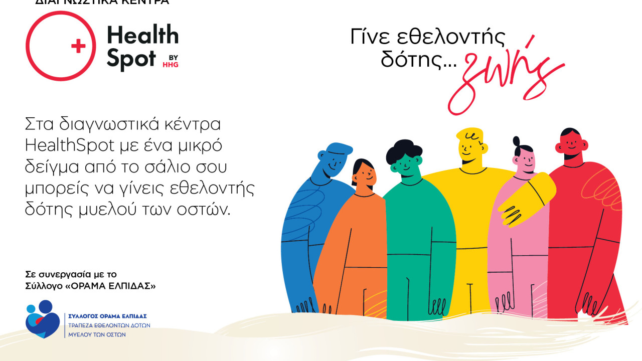 Τα Διαγνωστικά Κέντρα HealthSpot στηρίζουν μια σημαντική πράξη βοήθειας προς το συνάνθρωπο και αποτελούν πλέον συνεργαζόμενο κέντρο του Συλλόγου «ΟΡΑΜΑ ΕΛΠΙΔΑΣ» πραγματοποιώντας εγγραφές εθελοντών δοτών μυελού των οστών.