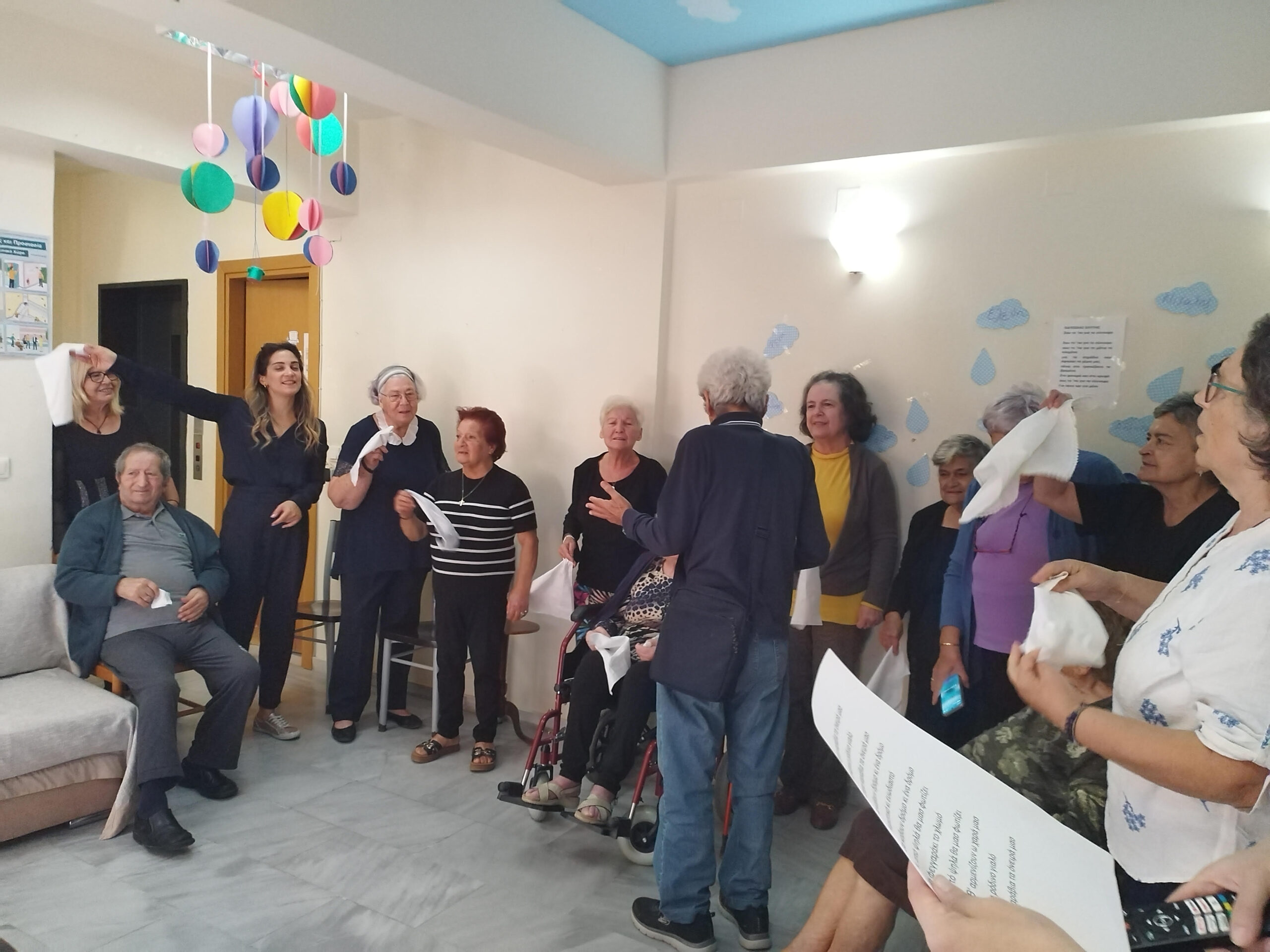 Οι ωφελούμενοι του Κέντρου δοκίμασαν τις ικανότητές τους στην υποκριτική και με την καθοδήγηση του προσωπικού ετοίμασαν θεατρική παράσταση με μικρά αποσπάσματα από ελληνικές ταινίες όπως η «Παριζιάνα» , οι «Γαμπροί της Ευτυχίας», «Δεσποινίς Διευθυντής» και «Χτυποκάρδια στο θρανίο». Στη συνέχεια τραγούδησαν όλοι μαζί, πέρασαν τα δικά τους μηνύματα για την Τρίτη Ηλικία, γεύτηκαν απολαυστικά εδέσματα και αντάλλαξαν αναμνηστικά δώρα.