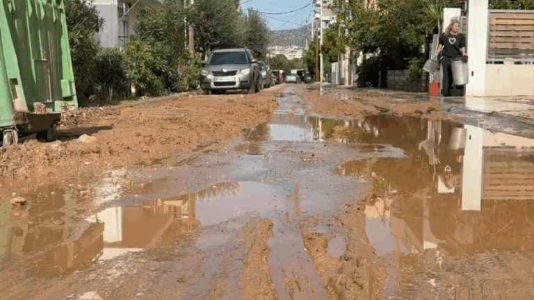 Δύο ημέρες μετά τον κατακλυσμό, αρχίζει να εξομαλύνεται η εικόνα στις οδούς Μετσόβου και η Ανθέων στην Άνω Γλυφάδα. Πρόκειται για τον μεγάλο δρόμο της Τερψιθέας που είχε κλείσει από πέτρες και φερτά υλικά.
