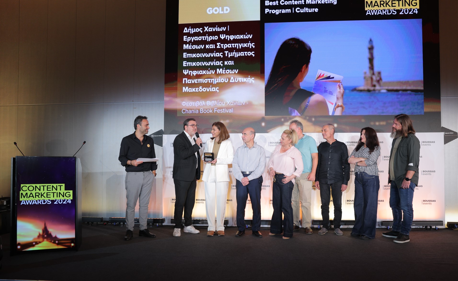 Με το Βραβείο Gold (Χρυσό) βραβεύτηκε το Φεστιβάλ Βιβλίου Χανίων (ΦΒΧ), που πραγματοποιείται σε οργάνωση του Δήμου Χανίων με τη συνεργασία της Περιφέρειας Κρήτης, στα ετήσια βραβεία Content Marketing Awards 2024, που διοργάνωσε η BOUSSIAS events, μέσω των οποίων επιβραβεύονται εξαιρετικά επιτεύγματα και καινοτόμες πρακτικές, για την καμπάνια ενημέρωσης στα μέσα κοινωνικής δικτύωσης (social media) του 3ου Φεστιβάλ Βιβλίου Χανίων (26 με 30 Ιουνίου 2024).