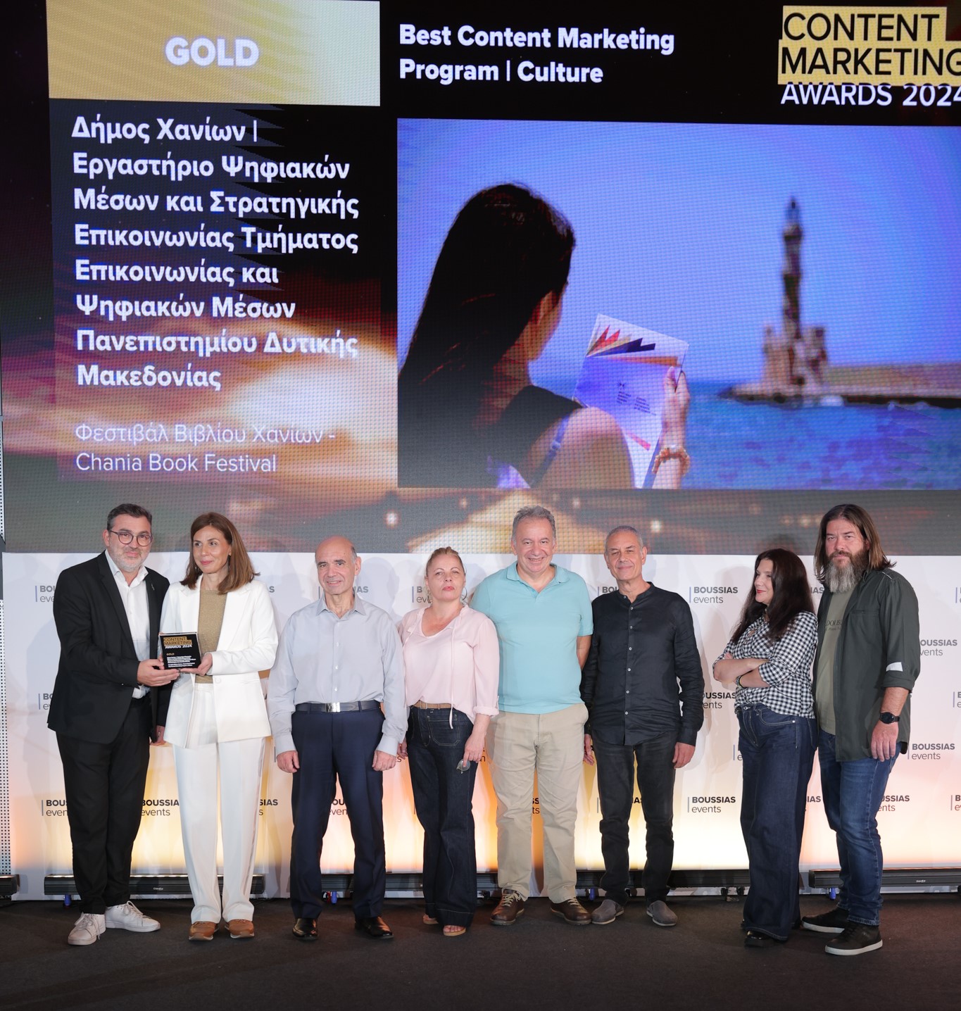 Κατά τη διάρκεια της Τελετής Απονομής των Βραβείων Content Marketing Awards 2024, που πραγματοποιήθηκε την Τετάρτη 9 Οκτωβρίου 2024 στο Συνεδριακό Κέντρο Εθνικής Ασφαλιστικής (Λεωφ. Ανδρέα Συγγρού 103, Αθήνα), εκ μέρους του Δήμου Χανίων παραβρέθηκε ο αντιδήμαρχος Πολιτισμού Γιάννης Γιαννακάκης∙ από το Πανεπιστήμιο Δυτικής Μακεδονίας, ο διευθυντής του Εργαστηρίου και πρόεδρος του Τμήματος Επικοινωνίας και Ψηφιακών Μέσων, καθηγητής Γεώργιος Λάππας∙ από την ομάδα έργου του ΦΒΧ οι Μανώλης Πιμπλής, διευθυντής, Βασίλης Κιμούλης, υπεύθυνος Επικοινωνίας & Γραφείου Τύπου, Λευτέρης Μπλέτσας, σύμβουλος Τεχνολογίας & Ιστοσελίδας & Συντονιστής ομάδας εθελοντών, Λένα Ματσιώρη, υπεύθυνη Πολιτιστικού Προγράμματος και Κυριακή Μπεϊόγλου, σύμβουλος Έργου & υπεύθυνη οργάνωσης Παράλληλων Εκδηλώσεων.