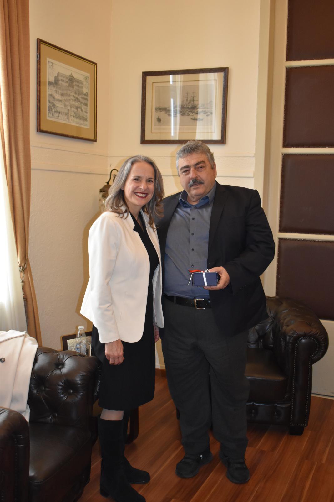 Τον Αντιπεριφερειάρχη Χανίων κ. Νίκο Καλογερή επισκέφτηκε η Εκτελεστική Πρέσβης των ΗΠΑ στην Αθήνα, κα Maria Olson, συνοδευόμενη από τον Πολιτικό Σύμβουλο της Αμερικάνικης Πρεσβείας στην Αθήνα κ. Chris Dostal, τον Στρατιωτικό Ακόλουθο της Πρεσβείας Πλοίαρχο Mark Imblum, όπως και την υπεύθυνη πρωτοκόλλου και δημοσίων σχέσεων της Ναυτικής Ευκολίας Σούδας κα Ηλέκτρα Σαριδάκη.