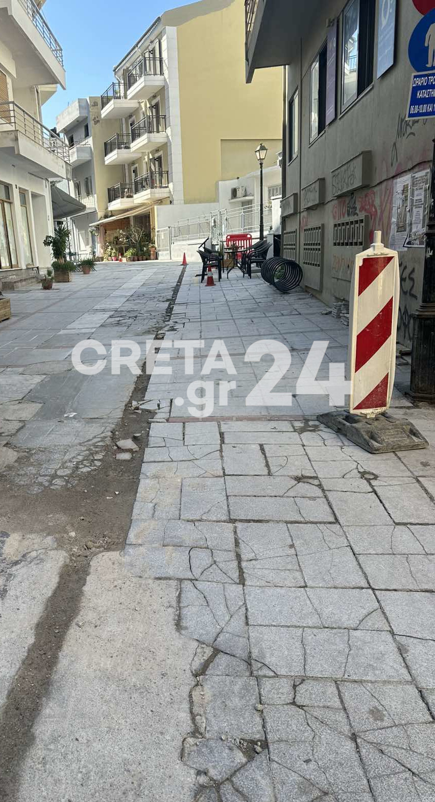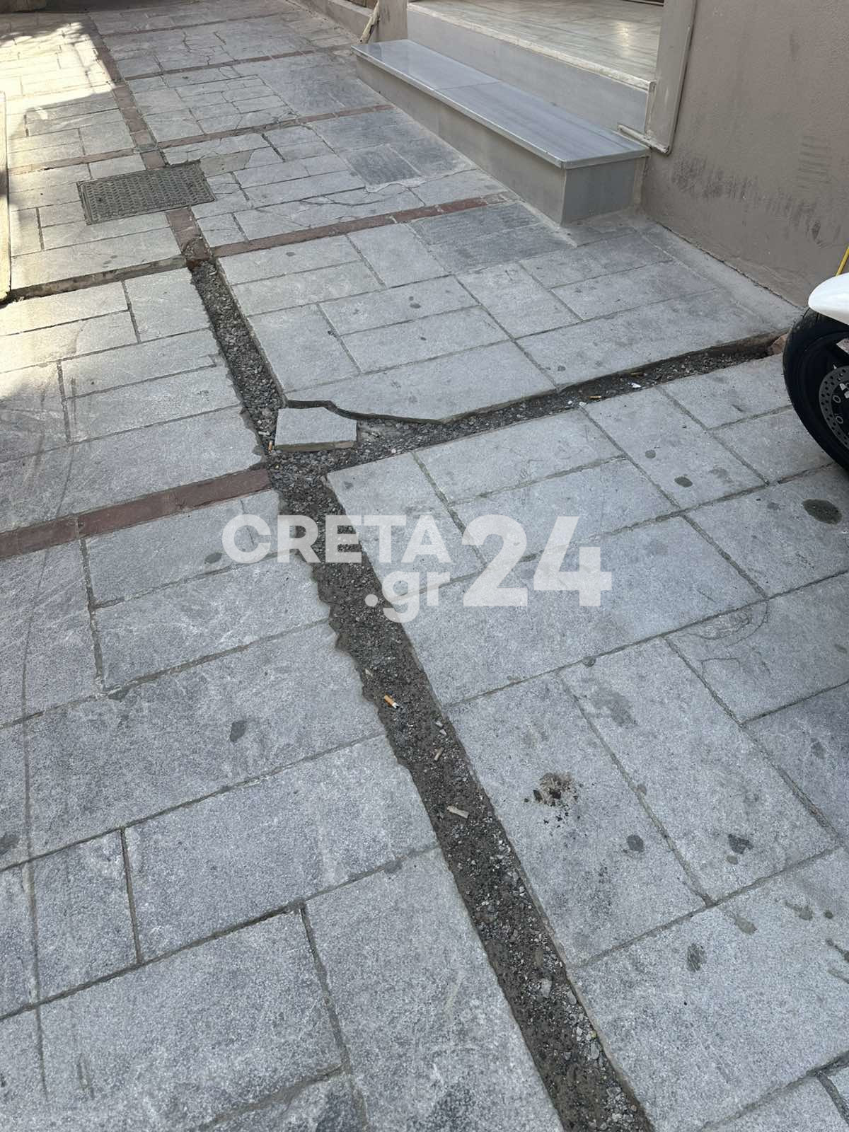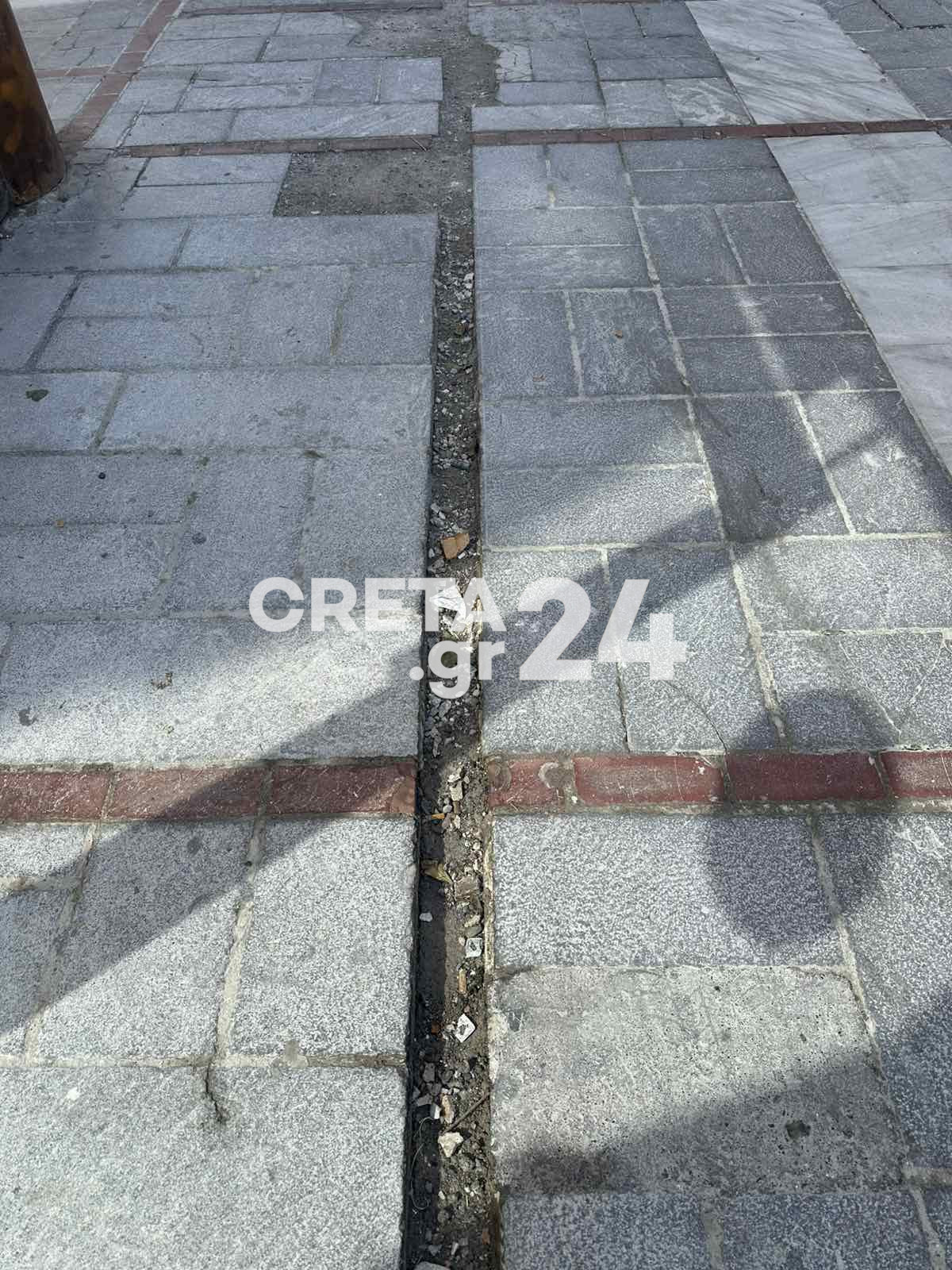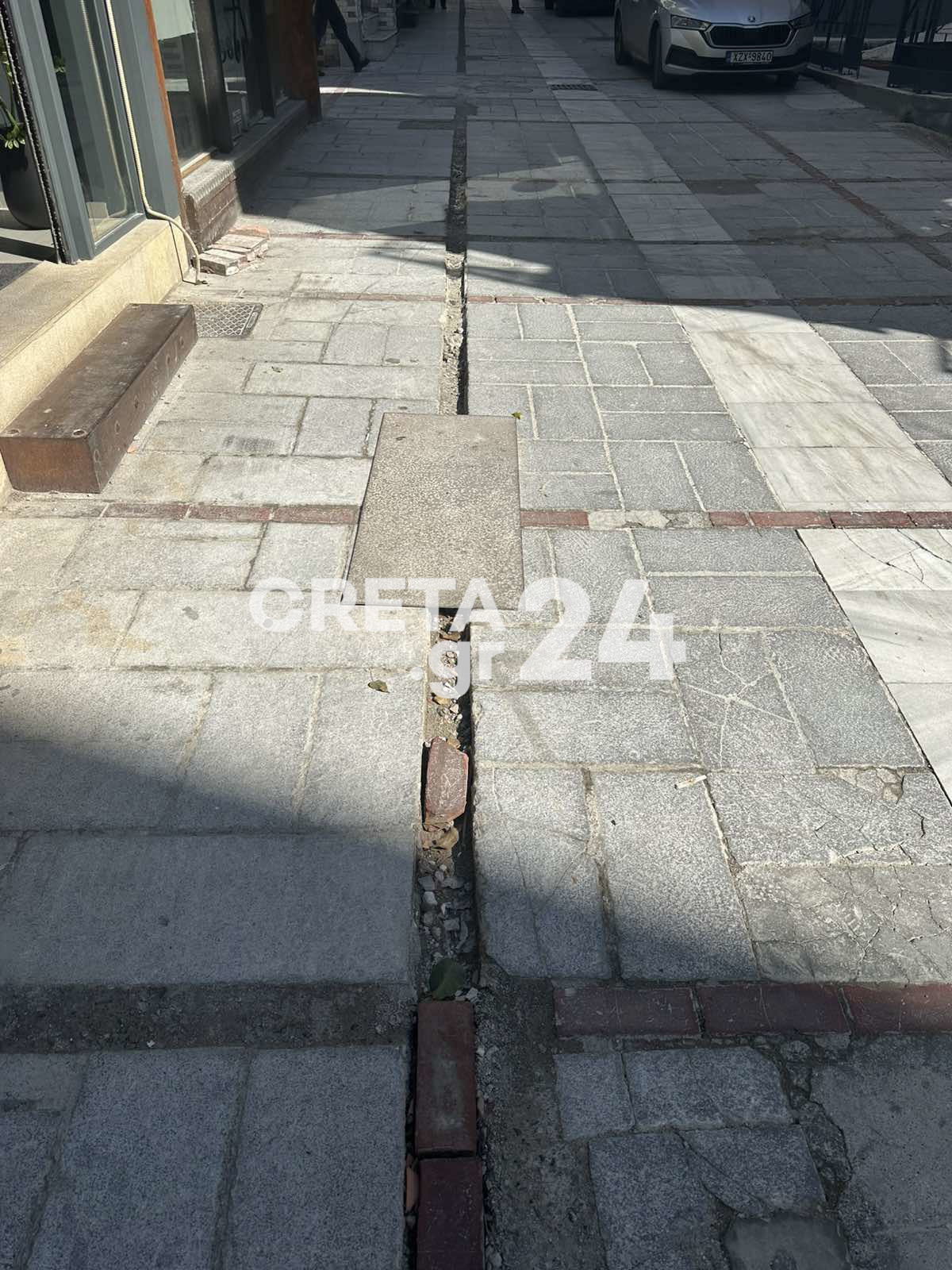 Απαράδεκτες εικόνες καταγράφονται στον πεζόδρομο της Μιλάτου, στο κέντρο του Ηρακλείου, μετά τις εργασίες για την εγκατάσταση του δικτύου οπτικών ινών.