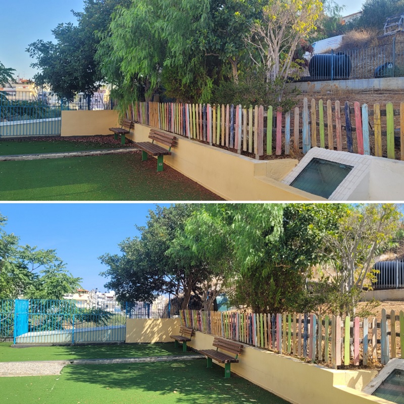 Οι εργασίες ξεκίνησαν μέσα στο καλοκαίρι στα σχολικά συγκροτήματα που συμμετείχαν στο νέο θεσμό του Δήμου Ηρακλείου «Ανοιχτές Αυλές-Ανοιχτά Σχολεία» και συνεχίζονται με εντατικούς ρυθμούς.