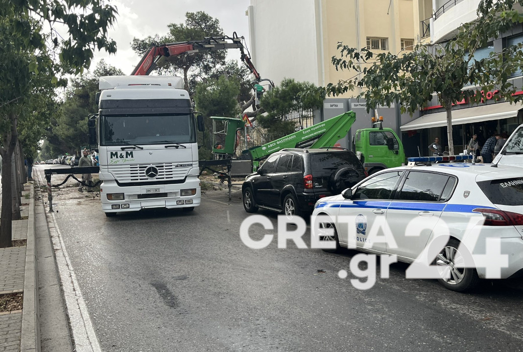 Σε κλάδεμα δύο μεγάλων πεύκων στη λεωφόρο Δημοκρατίας προχωρούν από το πρωί συνεργεία του δήμου Ηρακλείου.