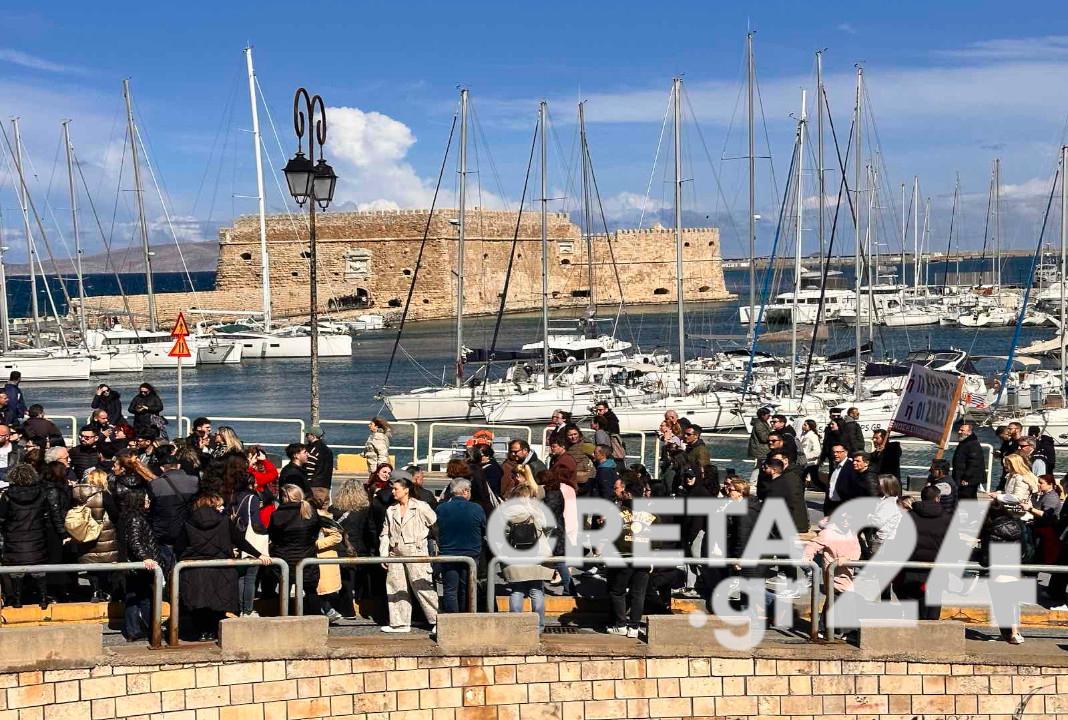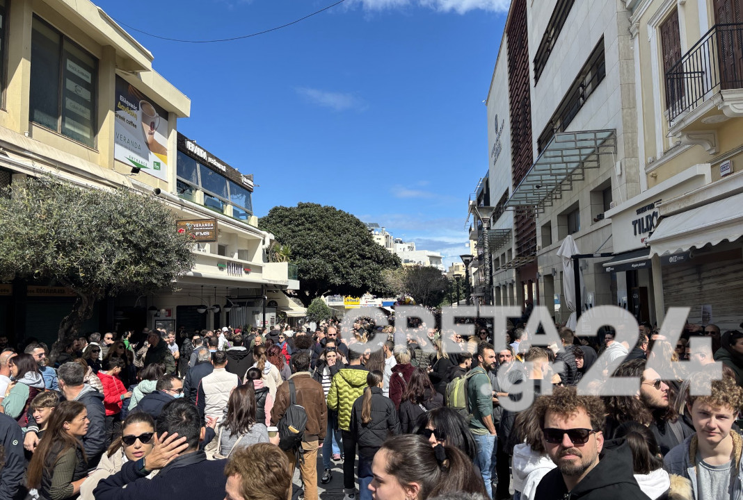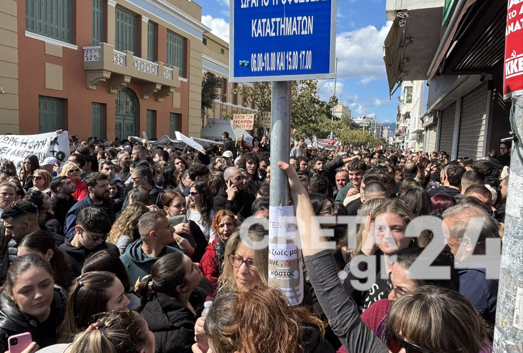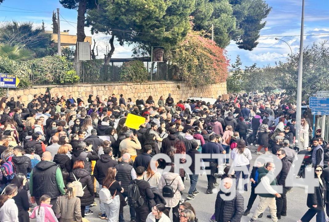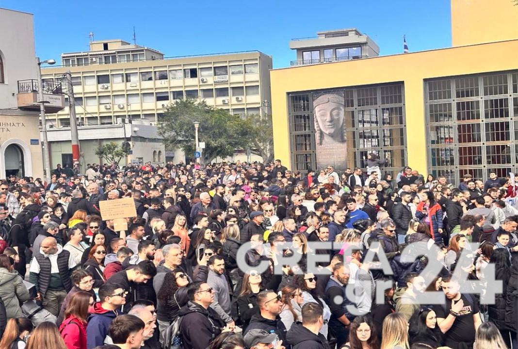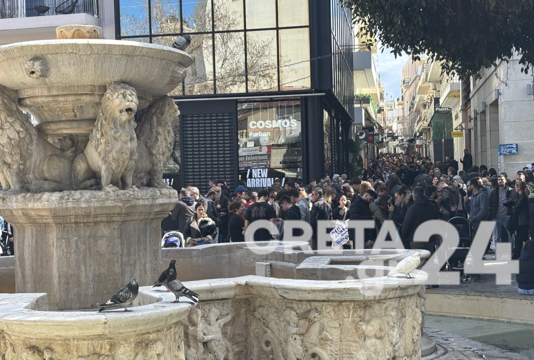 Πρόκειται για μια πρωτόγνωρα μαζική διαδήλωση στο Ηράκλειο, ενώ ιδιαίτερη είναι η συγκίνηση των διαδηλωτών, που στα πηγαδάκια που σχηματίζουν έχουν ως μοναδικό θέμα συζήτησης την τραγωδία που έχει συγκλονίσει το πανελλήνιο.