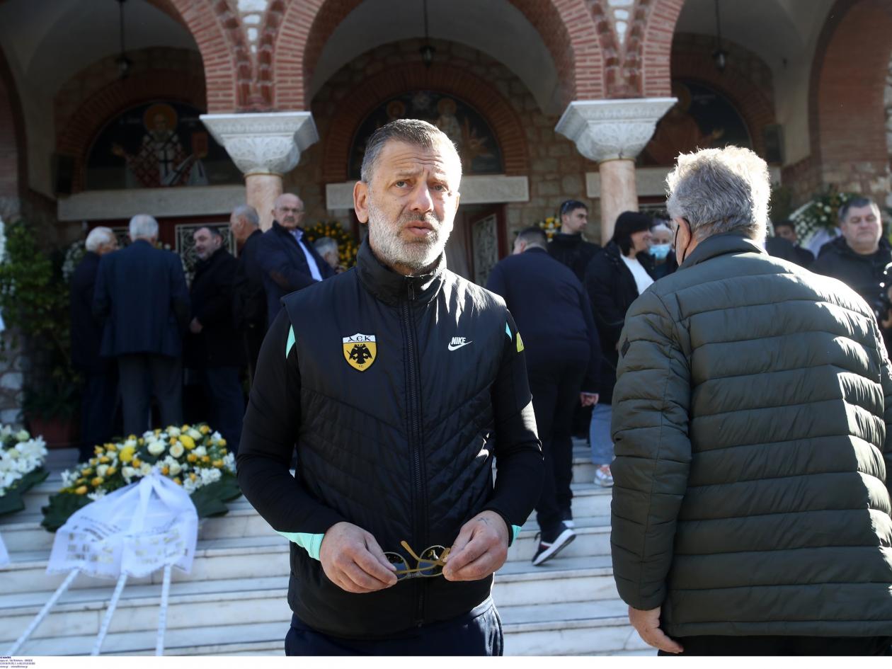 Η σορός του μεταφέρθηκε το πρωί στον Ιερό Ναό της Αγίας Τριάδας, πλησίον της OPAP Arena, τυλιγμένη με τη σημαία της ΑΕΚ, υπό τους ήχους του ύμνου της ομάδας.