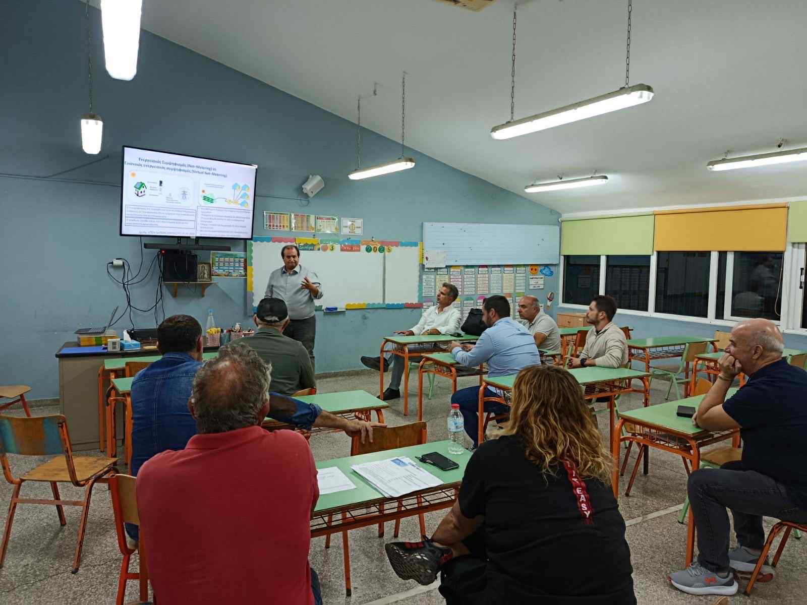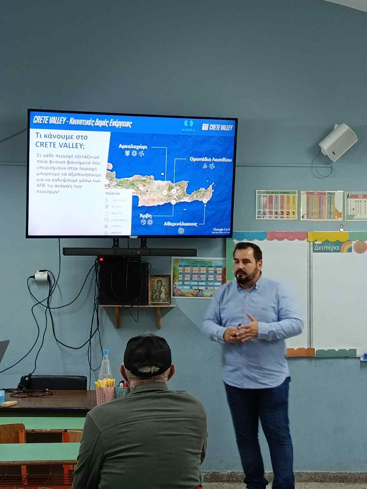 Στελέχη της «Μινώα Ενεργειακή Κοινότητα» και της εταιρείας SYCHEM παρουσίασαν στους κατοίκους τα οφέλη και την πρόοδο του έργου, το οποίο εντάσσεται στο ευρύτερο ευρωπαϊκό πρόγραμμα «Crete Valley», με την Περιφέρεια Κρήτης να συμμετέχει ενεργά ως εταίρος.