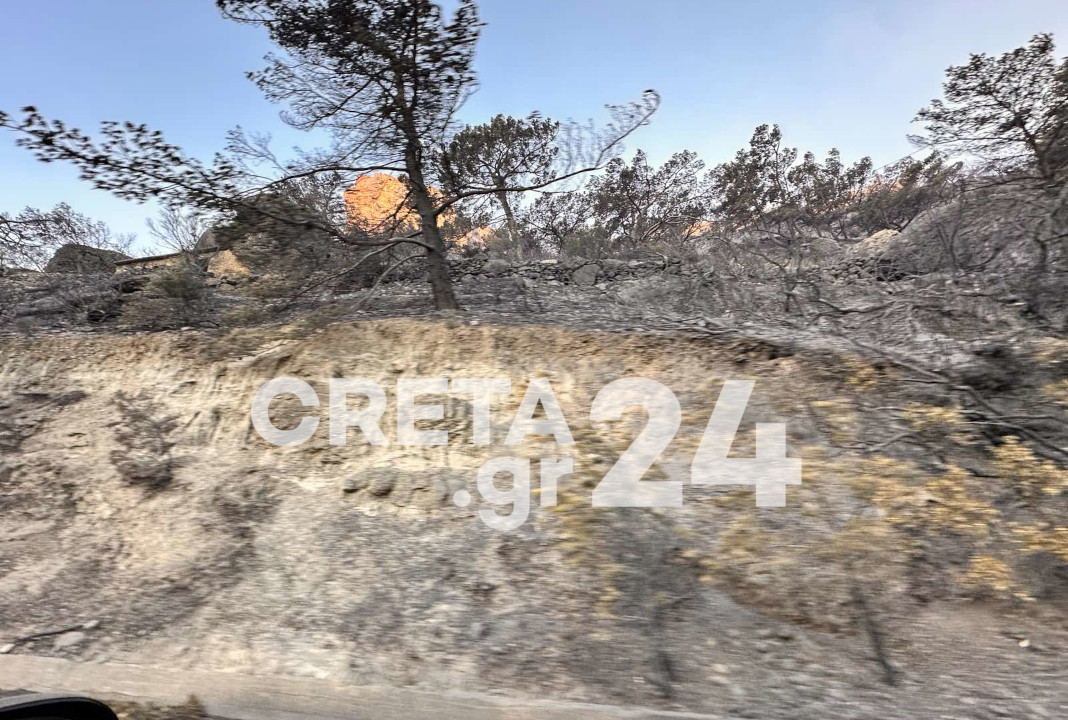 Συνδρομή στο έργο της κατάσβεσης παρέχουν υδροφόρες και μηχανήματα έργου της Περιφέρειας Κρήτης καθώς και του Γενικού Επιτελείου Εθνικής Άμυνας.