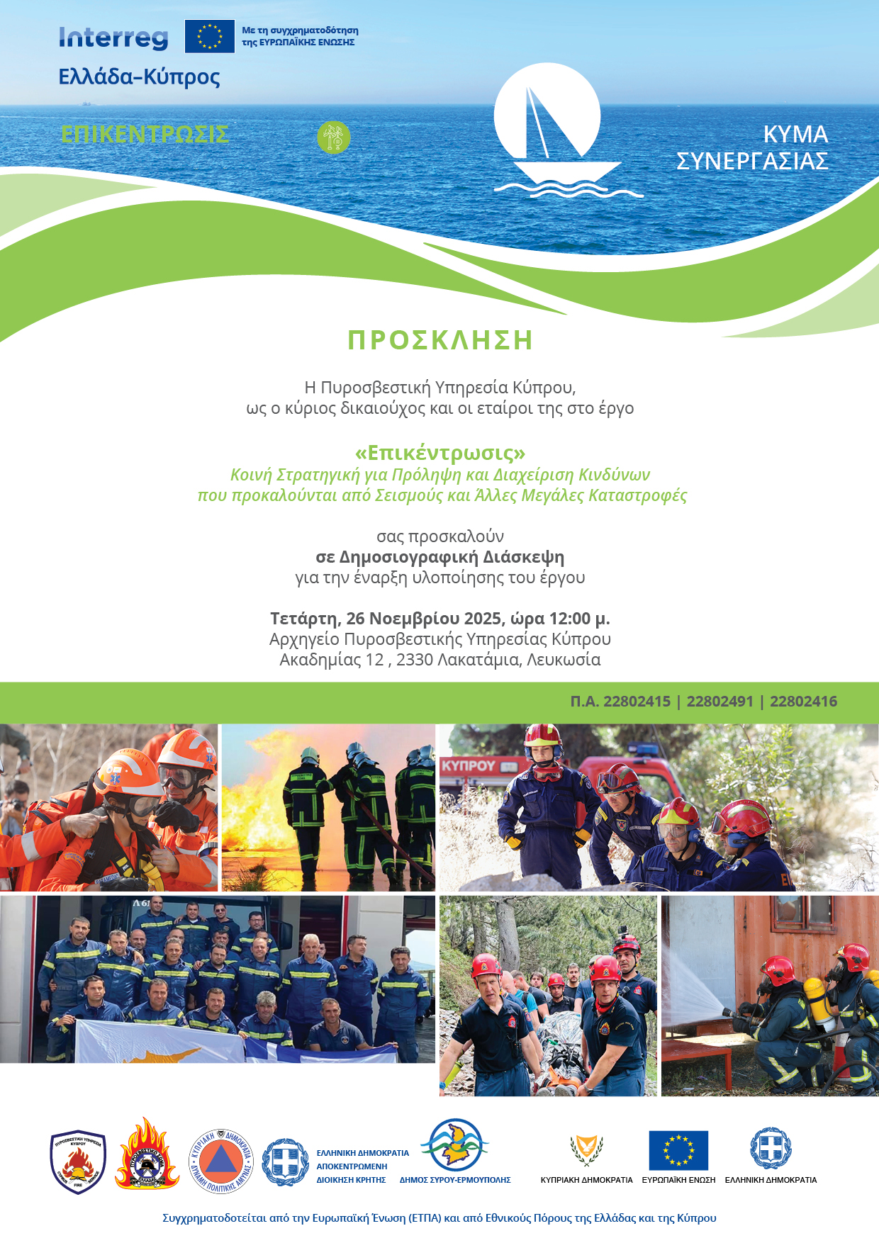 Το ΕΠΙΚΕΝΤΡΩΣΙΣ αποτελεί το έκτο (6) ευρωπαϊκό πρόγραμμα διακρατικής συνεργασίας Ελλάδας-Κύπρου στο οποίο συμμετέχει η Αποκεντρωμένη Διοίκησης Κρήτης από το 2010 έως σήμερα, σταθερά με την Πολιτική Άμυνα Κύπρου και άλλους εταίρους από τις δύο χώρες, σε θέματα πολιτικής προστασίας και διασυνοριακής κινητοποίησης. Κάθε έργο στοχεύει στη θεσμική εδραίωση της στρατηγικής συνεργασίας Ελλάδας-Κύπρου, που ενισχύεται περαιτέρω μέσω του Ευρωπαϊκού Μηχανισμού Πολιτικής Προστασίας, στην αποτελεσματικότερη αξιοποίηση των διαθέσιμων πόρων και την ενίσχυση της κοινής δράσης για την προστασία της ανθρώπινης ζωής και του περιβάλλοντος.