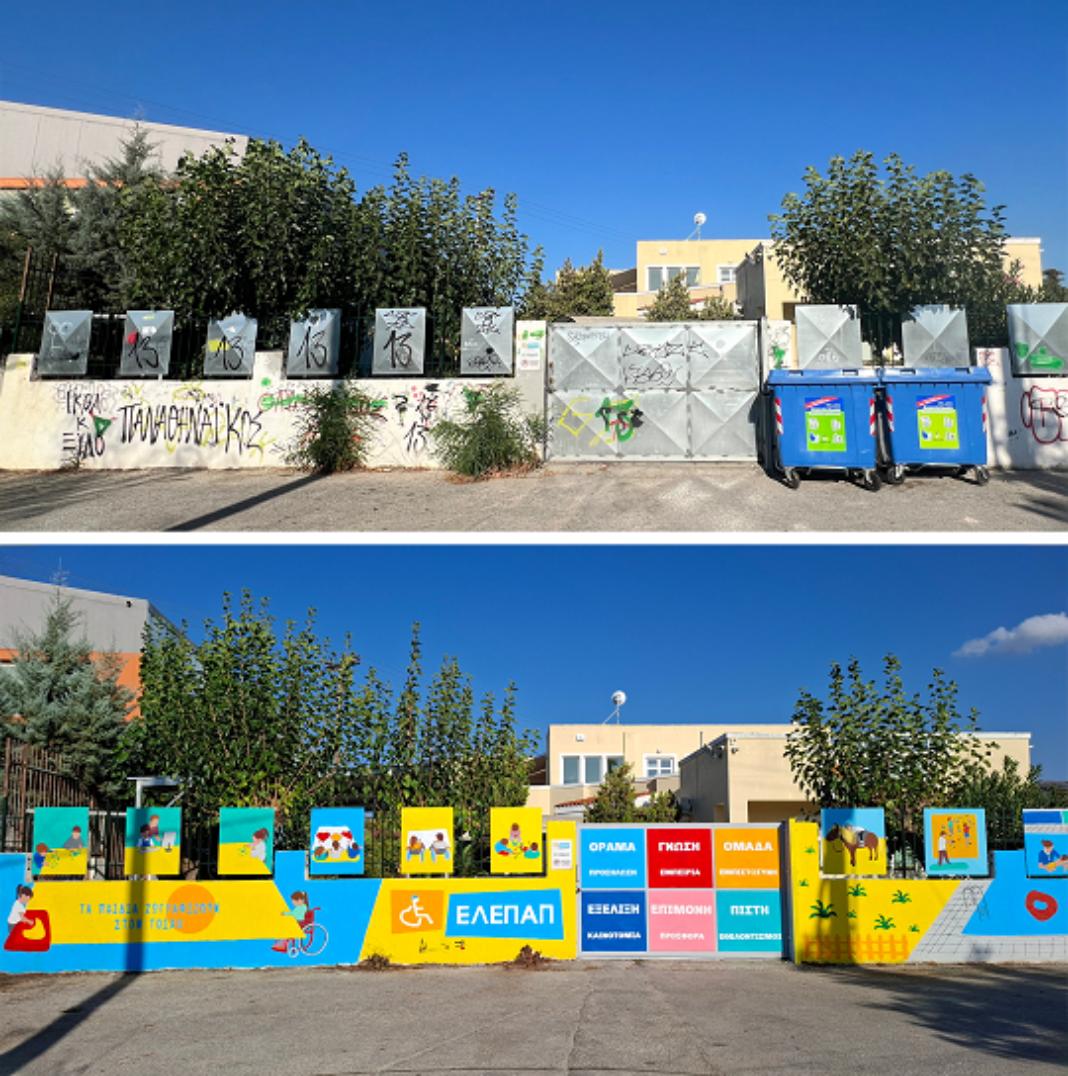 Για τρεις μέρες, ξεκινώντας από την Παρασκευή 30 Αυγούστου, νωρίς το πρωί, η ομάδα του έργου φιλοτέχνησε με περίσσεια φροντίδα, αγάπη και ενθουσιασμό την μέχρι σήμερα γκρι και πολλάκις βανδαλισμένη εξωτερική περίφραξη, δίνοντας νότες χαράς και αισιοδοξίας.