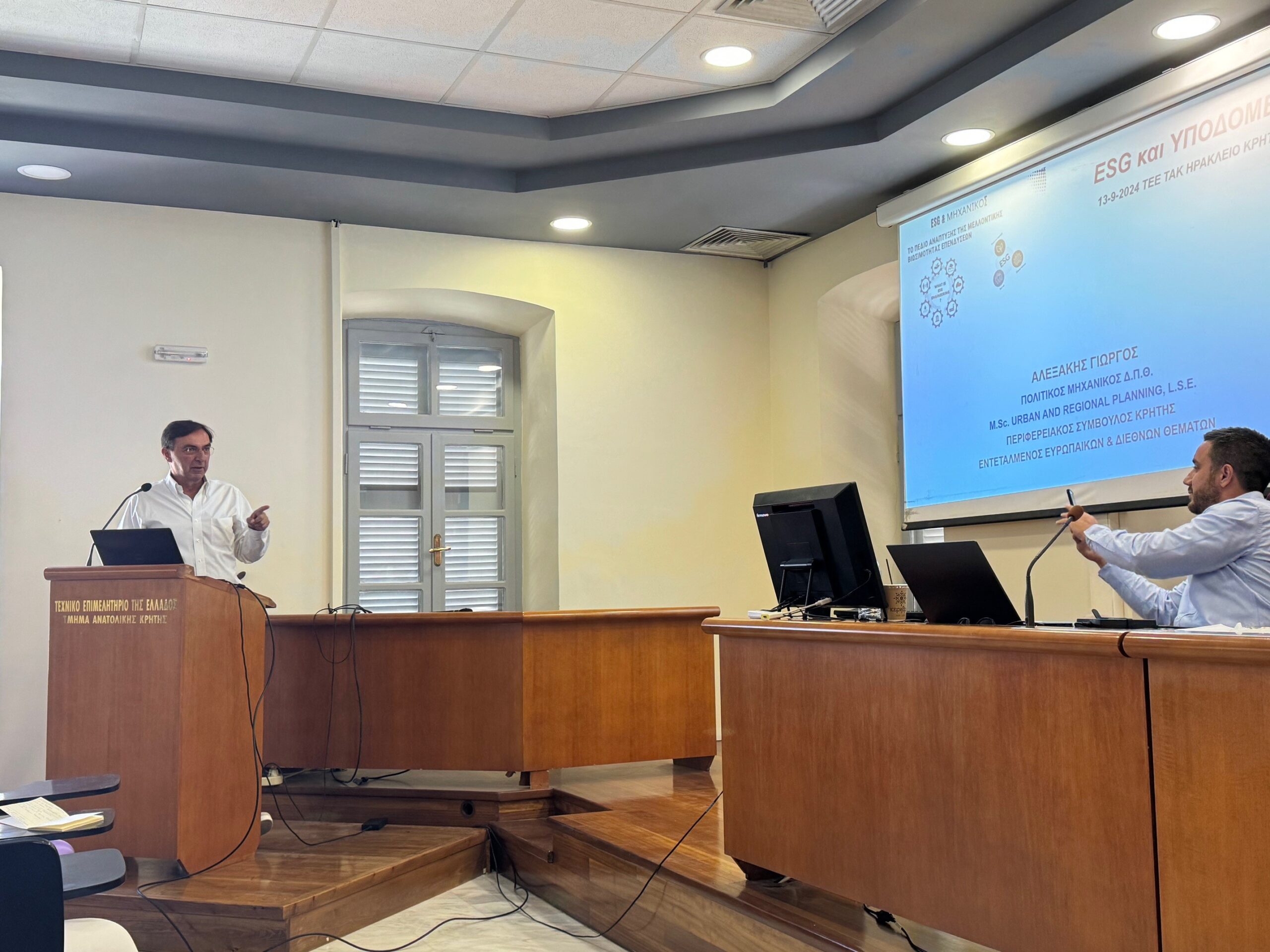 Η Περιφέρεια Κρήτης συμμετείχε στην ενδιαφέρουσα Ημερίδα με θέμα ESG και Μηχανικός: πεδίο ανάπτυξης της Μελλοντικής Βιωσιμότητας Επενδύσεων, που διοργάνωσε το ΤΕΕ ΤΑΚ.