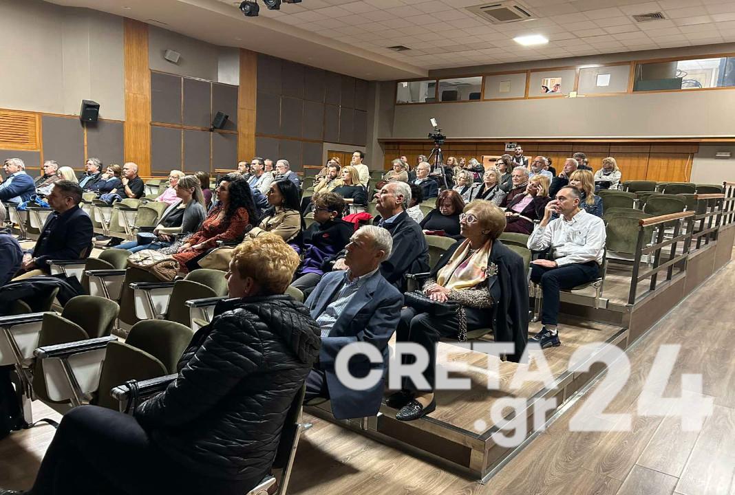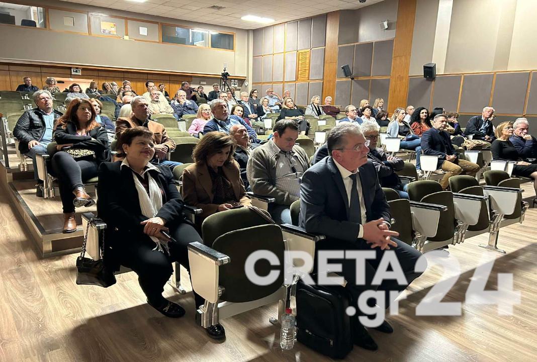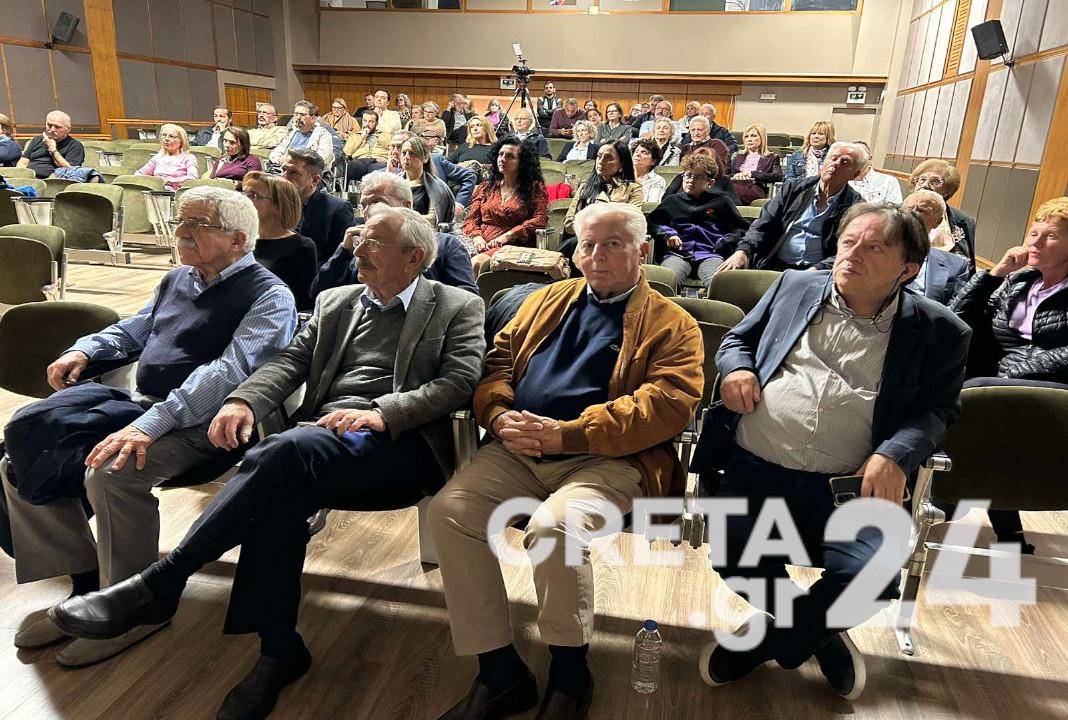 Η πρώτη ομιλία με θέμα «Στεφανιαία Νόσος, Έμφραγμα του Μυοκαρδίου» με ομιλητές τον Καθηγητή καρδιολογίας και υπεύθυνο του Αιμοδυναμικού Εργαστηρίου ΠαΓΝΗ Μανόλη Σκαλίδη, και τον Επιμελητή της Καρδιολογικής κλινικής ΠαΓΝΗ Δημήτρη Λεμπιδάκη με συντονιστή της συζήτησης τον καθηγητή Καρδιολογίας Μανόλη Σημαντηράκη, ξεκίνησε στις 7 σήμερα το απόγευμα στην δημοτική αίθουσα «Μανόλης Καρέλλης» στο κτήριο Ανδρόγεω.
