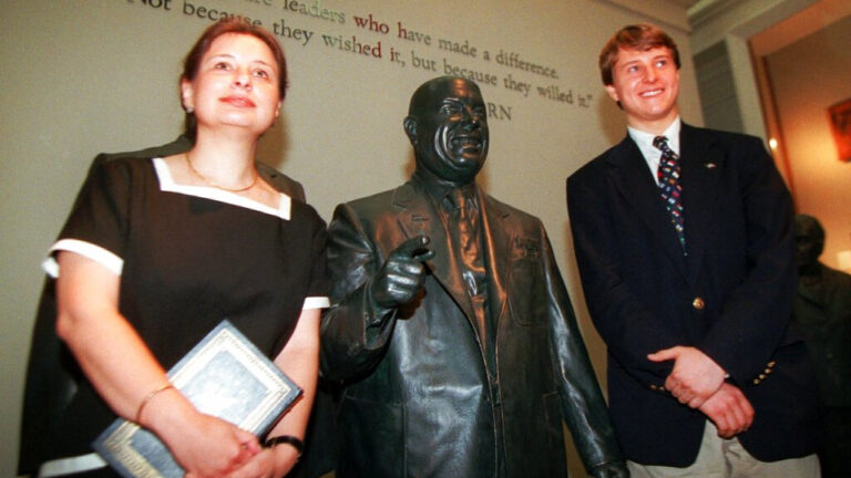 «Υπάρχει σίγουρα ιστορική ειρωνεία αλλά τίποτα σοκαριστικό. Όταν ο Στάλιν ανεβαίνει, ο Χρουστσόφ κατεβαίνει», είπε, αναφερόμενη στην αναβίωση της φήμης του Ιωσήφ Στάλιν στη Ρωσία, η οποία είχε κατακριθεί έντονα από τον Χρουστσόφ σε διάσημη ομιλία του το 1956.