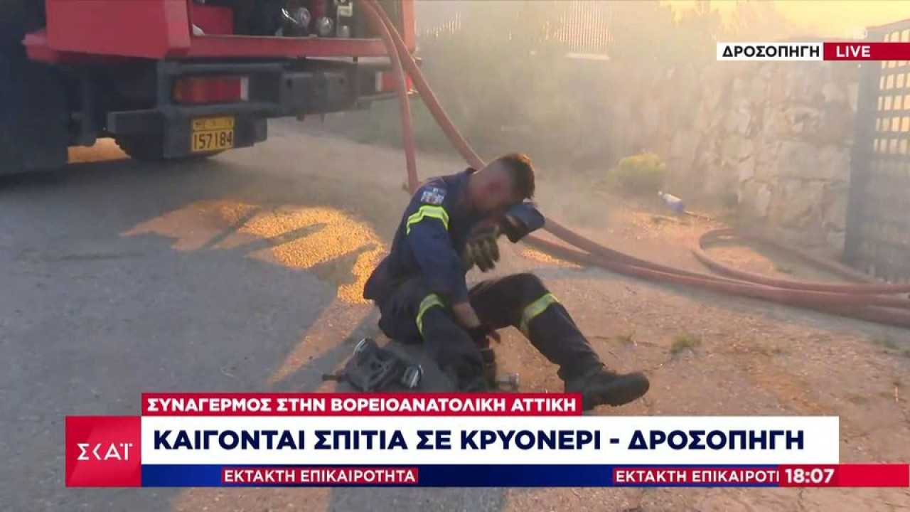 Εθελοντής πυροσβέστης κατέρρευσε την ώρα που ο ίδιος και οι συνάδελφοί του έδιναν μάχη με την ανεξέλεγκτη φωτιά στο Κρυοενέρι.