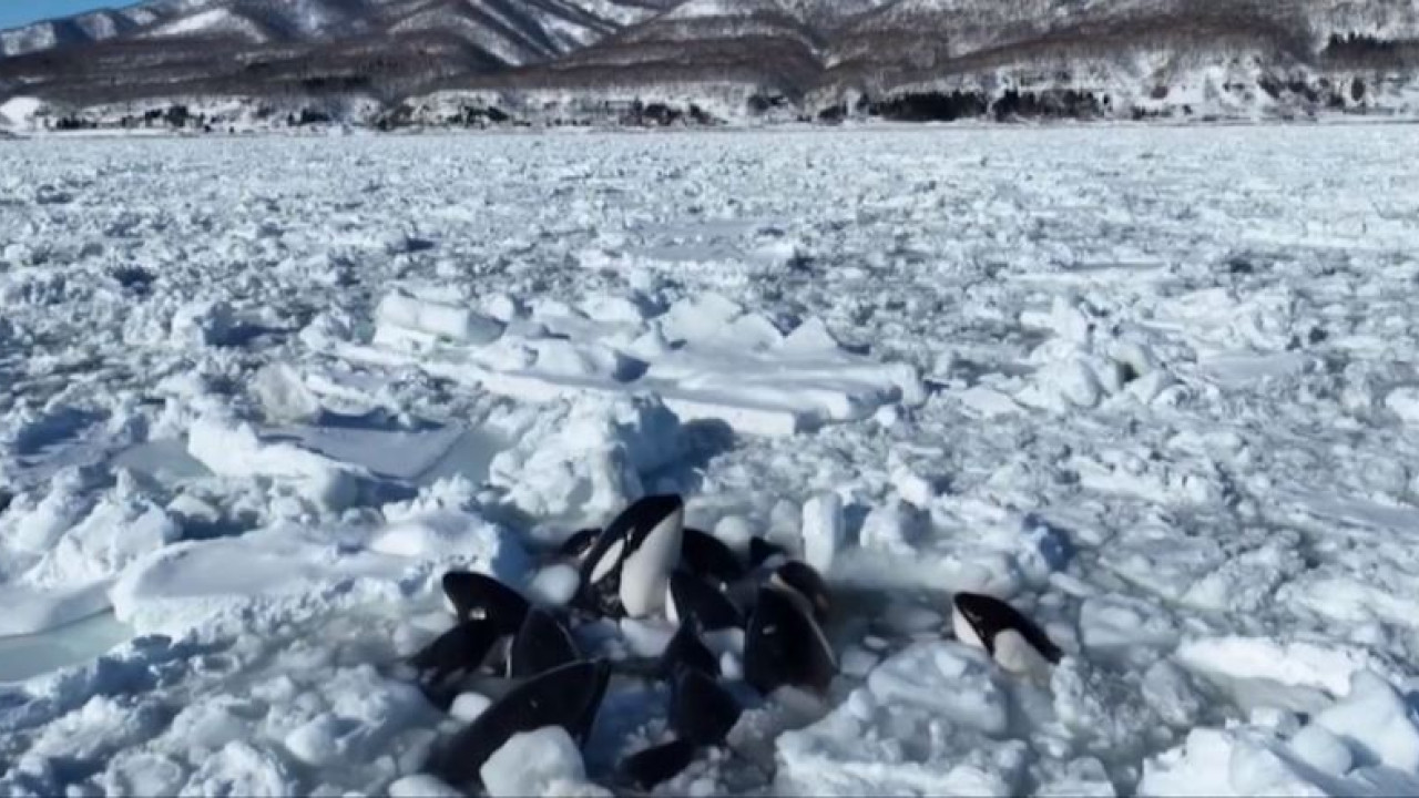 Οι όρκες εντοπίστηκαν από έναν ψαρά νωρίτερα αυτή την εβδομάδα, σχεδόν ένα χιλιόμετρο μακριά από το Χοκάιντο.