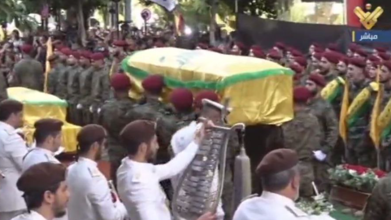 The pride of our nation—funeral for jihadi leader Ibrahim Aqil and martyr Mahmoud Yassin Hamad begins in Beirut’s southern suburb, as sirens blare across Israeli settlements. #LebanonSteadfastness #Gaza 🇱🇧🇵🇸✌️ pic.twitter.com/QtcXHu6R4v