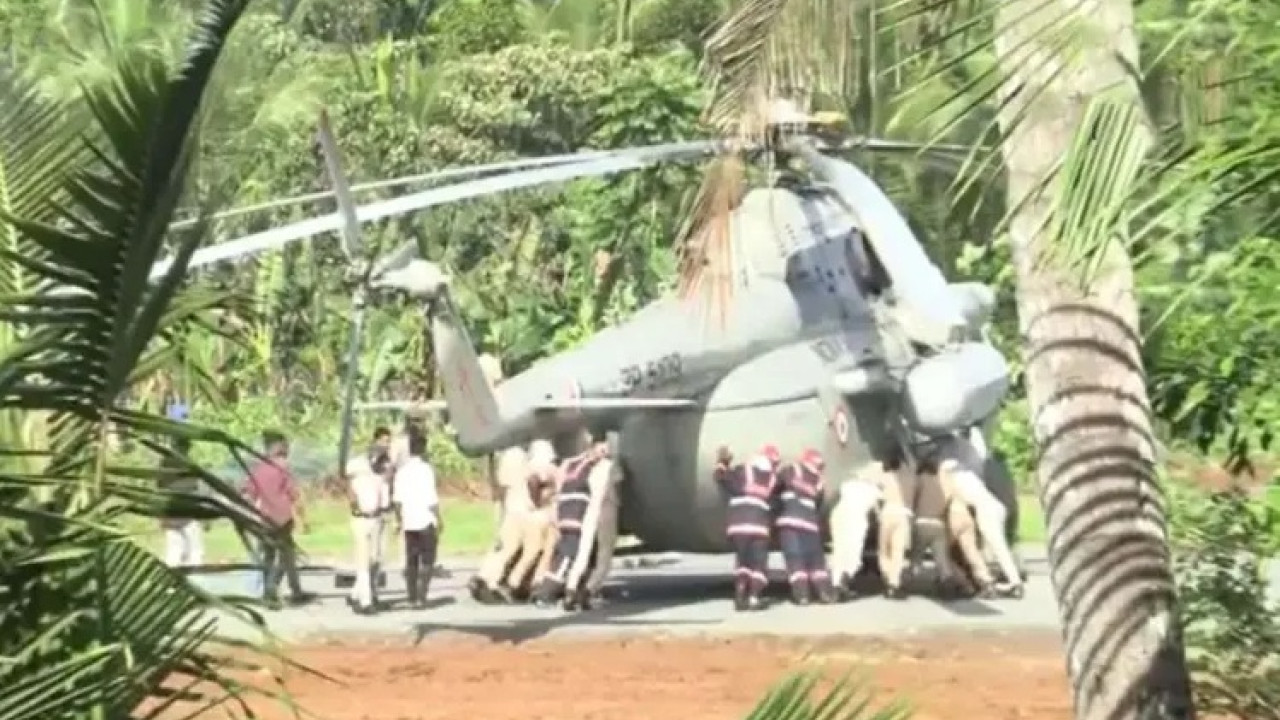 Δώστε όλοι ένα χεράκι… Το προεδρικό ελικόπτερο της Ινδής προέδρου Ντραουπάντι Μούρμου κόλλησε κατά την προσγείωση σε φρεσκοτοποθετημένη άσφαλτο, η οποία δεν είχε στεγνώσει λόγω και των βροχών και επιστρατεύτηκε ολόκληρη ομάδα ανθρώπων για να το ξεκολλήσει.
