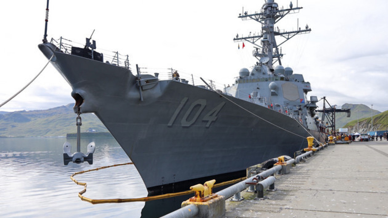 Το αντιτορπιλικό Sterett, το οποίο έφυγε από το λιμάνι του Σαν Ντιέγκο στις αρχές αυτού του μήνα, αυτή την εβδομάδα αγκυροβόλησε σε ένα σπάνια χρησιμοποιούμενο λιμάνι στο Dutch Harbor, περίπου 1.100 μίλια νοτιοδυτικά του Anchorage στα Αλεούτια Νησιά, ενώ περιπολούσε στη Βερίγγεια Θάλασσα.