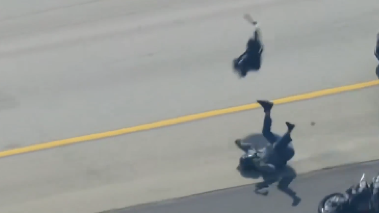 Ένα σοκαριστικό βίντεο από μια συγκλονιστική καταδίωξη στο Λος Άντζελες ήρθε στη δημοσιότητα, με ένα αυτοκίνητο που οδηγούσε αστυνομικός εκτός υπηρεσίας, να γκρεμίζει αναβάτη μηχανής ο οποίος λίγο νωρίτερα είχε σκοτώσει συνάδελφό του.