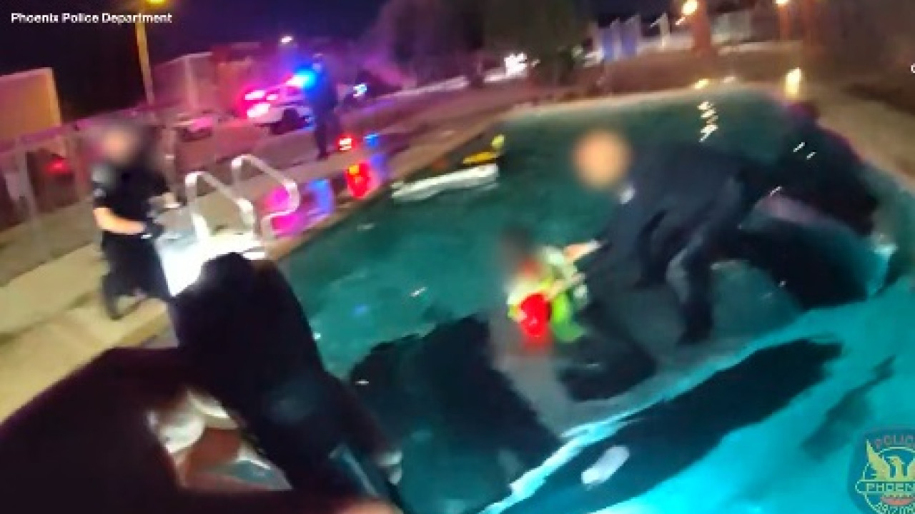 Police in Phoenix have released footage showing officers rescuing a man from a vehicle that went into a swimming pool.