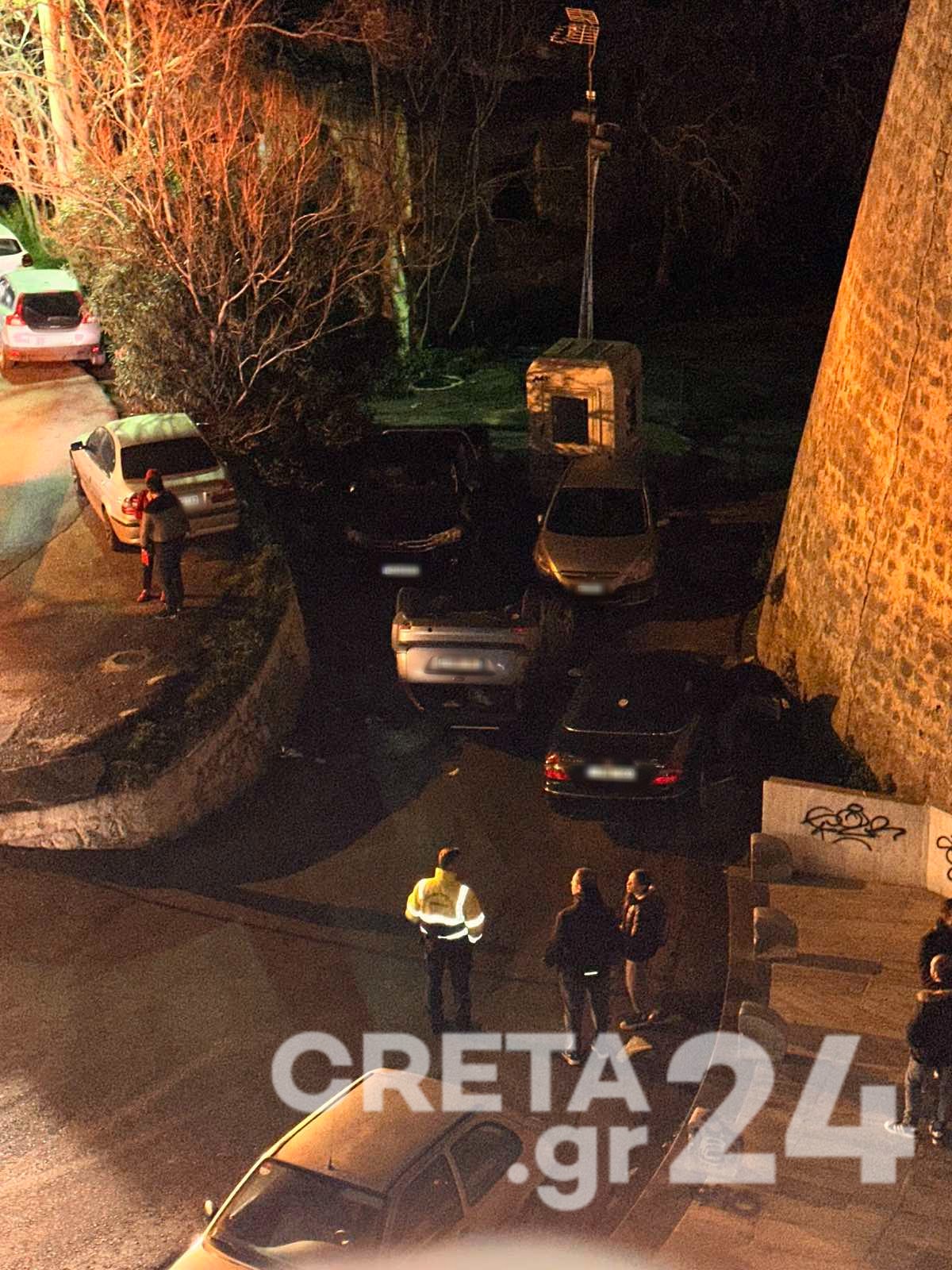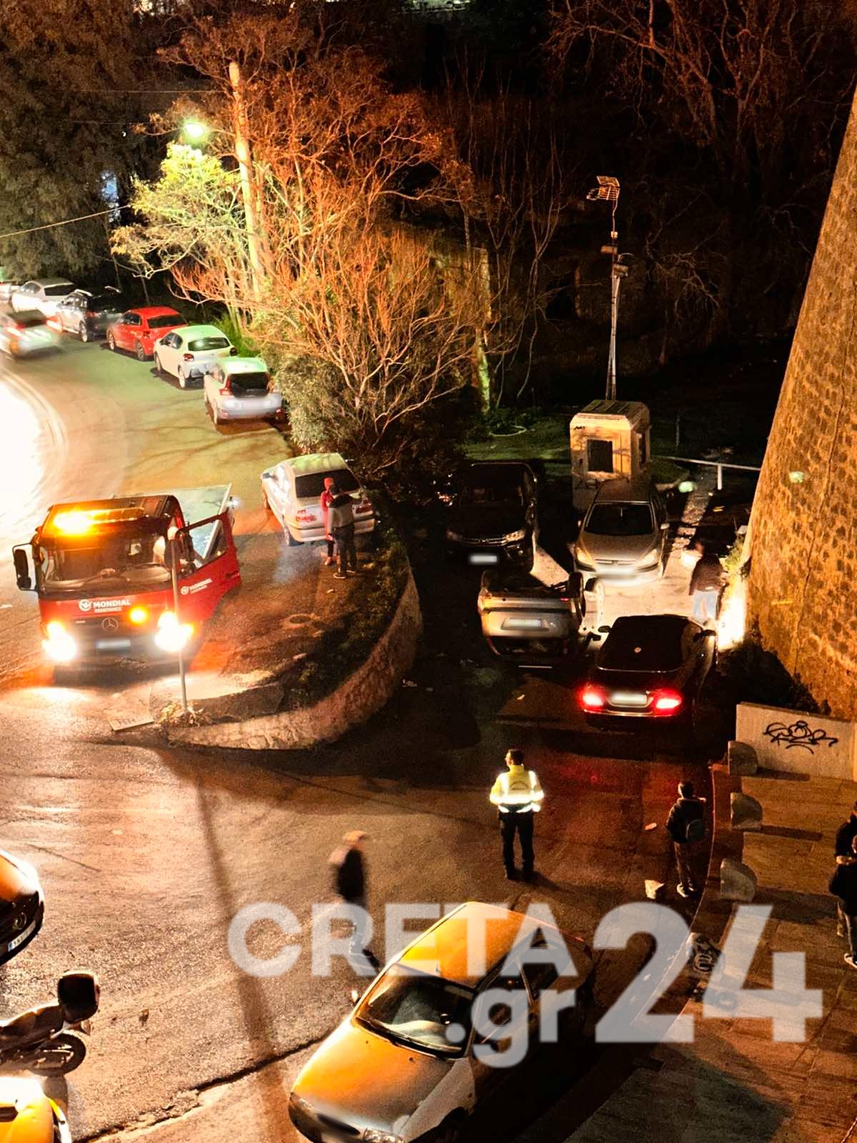 Ένα αυτοκίνητο «τούμπαρε» στο κέντρο της πόλης του Ηρακλείου το βράδυ της Δευτέρας.