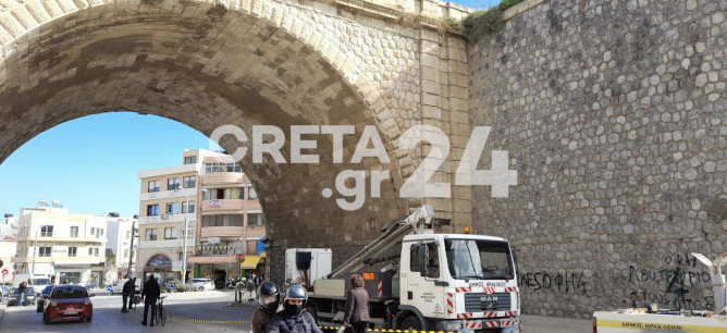 Στα τείχη είχαν εντοπιστεί ρηγματώσεις μετά τον μεγάλο σεισμό στο Αρκαλοχώρι και πλέον εκπονείται μελέτη για την στήριξη της πέτρινης επένδυσης του μνημείου.