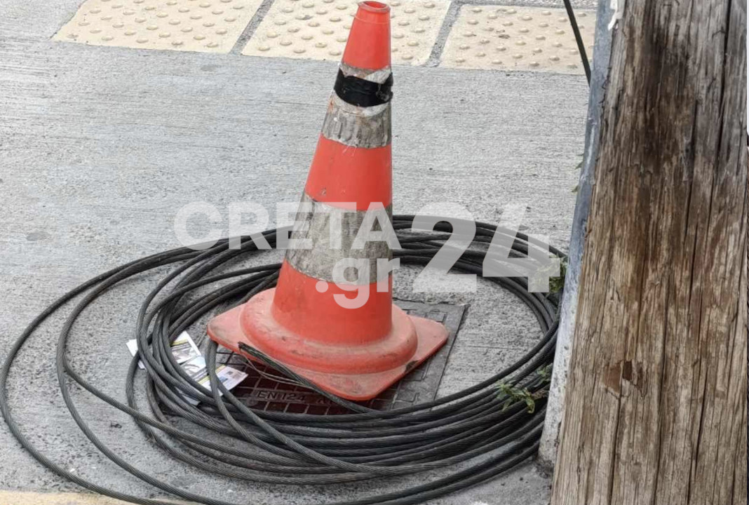 Αναστάτωση επικράτησε το πρωί του Σαββάτου σε γειτονιά του Ηρακλείου, όταν κόπηκε καλώδιο ρεύματος και έπεσε στο οδόστρωμα.