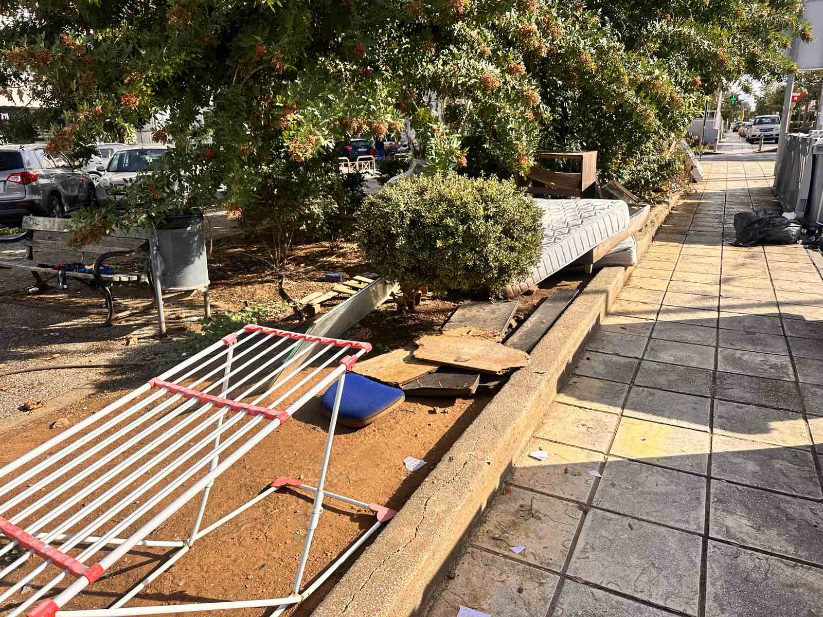 Εντάξει πολλές φορές έχουμε σχολιάσει την απαράδεκτη νοοτροπία ορισμένων που πετούν ογκώδη αντικείμενα δίπλα σε κάδους σκουπιδιών, στην περίπτωση όμως της οδού Μίνωος, δίπλα από το πάρκο που βρίσκεται στη συμβολή με τη Θερίσσου, θα βρει κανείς ένα ολόκληρο νοικοκυριό: απλώστρα ρούχων, καναπέ, ράφια, στρώμα και πολλά άλλα!