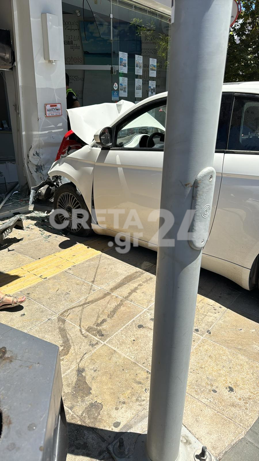 Ο οδηγός, ο οποίος για άγνωστο λόγο έχασε τον έλεγχο του οχήματος και αυτό έπεσε στη βιτρίνα του ταξιδιωτικού γραφείου, τραυματίστηκε ελαφρά και μεταφέρθηκε με ασθενοφόρο του ΕΚΑΒ στο ΠΑΓΝΗ.
