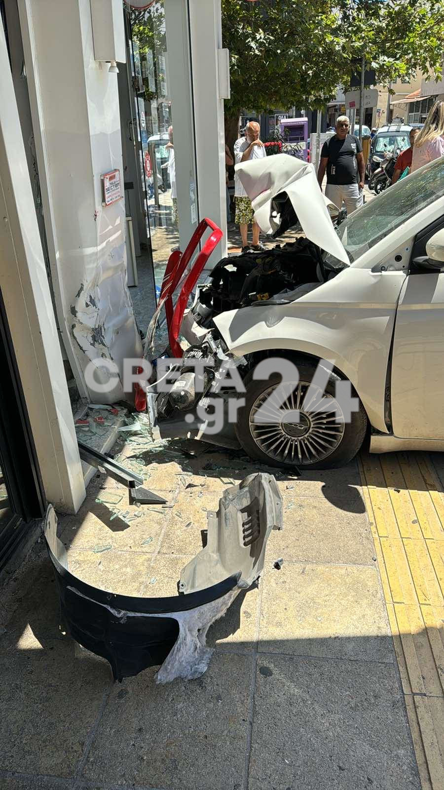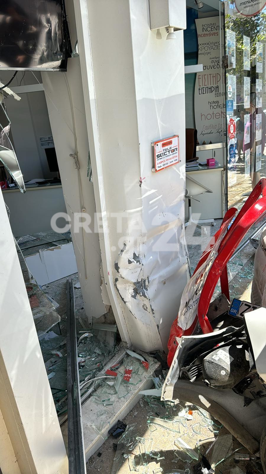 Στο βίντεο που δημοσιεύει το Creta24, φαίνεται το αυτοκίνητο να προσκρούει με ταχύτητα στη τζαμαρία περίπου δύο μέτρα μακριά από τον άνδρα, ο οποίος εμφανώς σοκαρισμένος, αλλά ευτυχώς χωρίς να τραυματιστεί, απομακρύνεται από το σημείο.