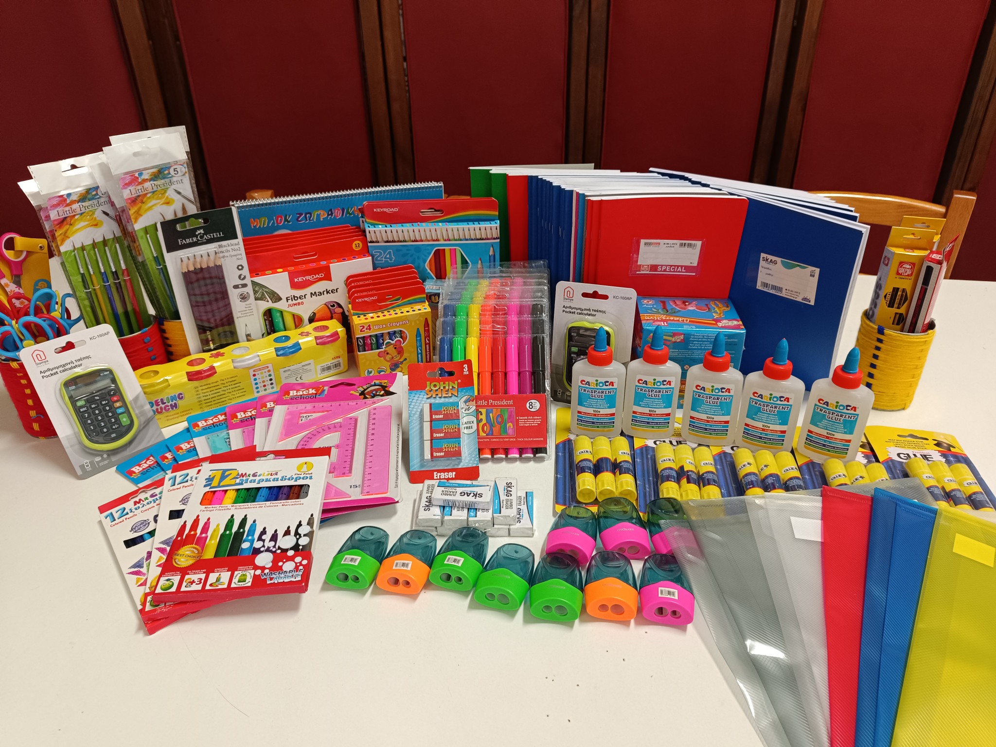 Τα μέλη του Κέντρου δημιούργησαν χειροποίητες μολυβοθήκες από ανακυκλώσιμα υλικά και συγκέντρωσαν με πολύ αγάπη σχολικά είδη όπως τετράδια, μολύβια, μαρκαδόρους, στύλους, γόμες, μπλοκ ζωγραφικής, τσάντες κ.α. Τα σχολικά είδη παραδόθηκαν την Πέμπτη 23/10 από το χώρο του Κ.Η.Φ.Η σε Εκπαιδευτική εκπρόσωπο του 1ου Δημοτικού Σχολείου Νέας Αλικαρνασσού.