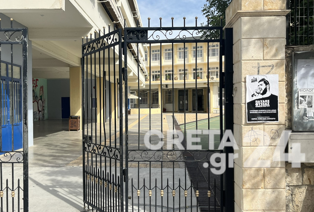 Μια αφίσα του Παύλου Φύσσα μπήκε στην καγκελόπορτα του 3ου ΓΕΛ Ηρακλείου, όπου οι μαθητές προχώρησαν σε κατάληψη.