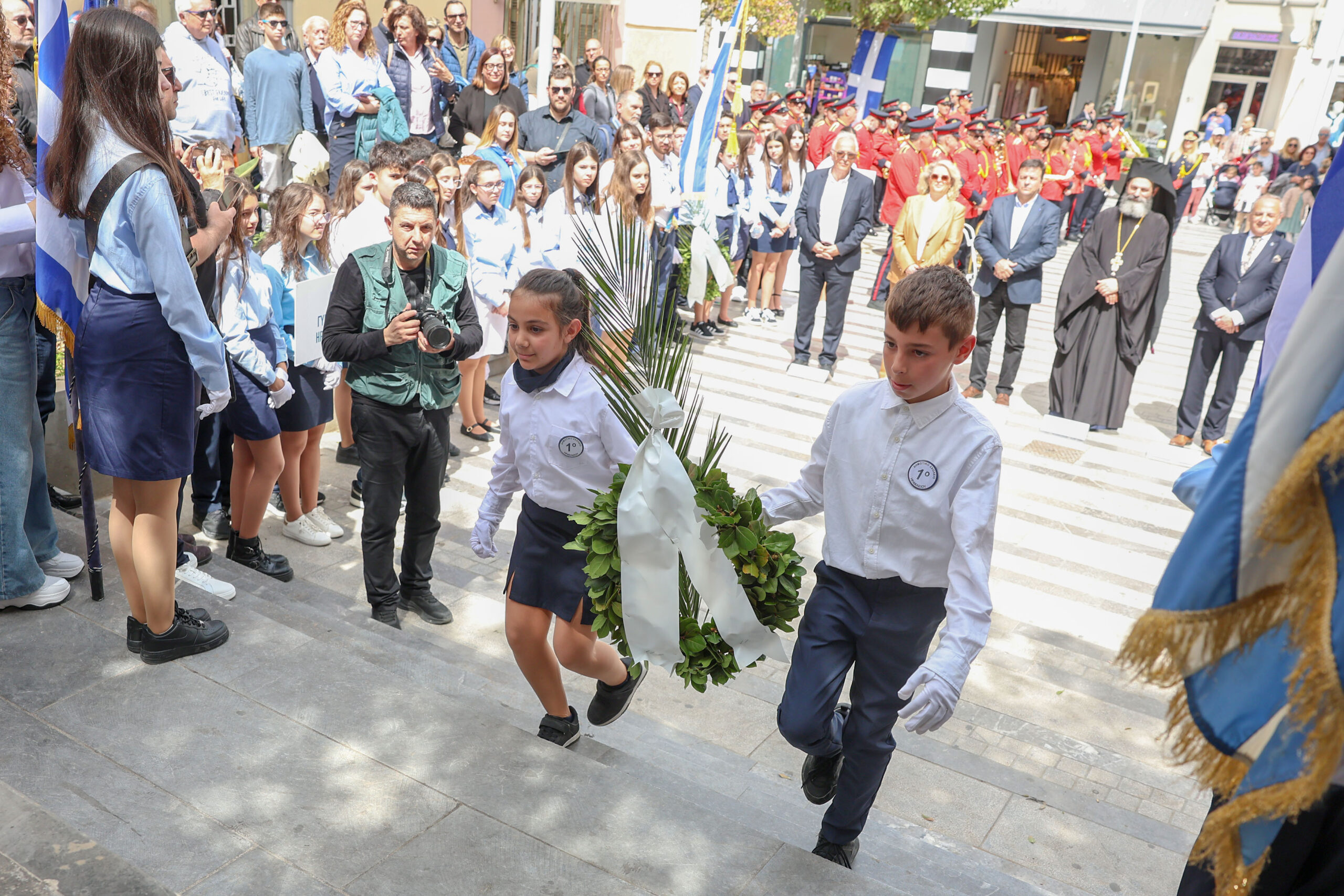 (Από τη Λεωφόρο Δημοκρατίας στο ύψος του μνημείου Μάχης Κρήτης, συνέχεια προς πλατεία Ελευθερίας, οδό Αβέρωφ, οδό Έβανς (αριστερά μεγάλη Έβανς) και ολοκλήρωση στην Καινούρια Πόρτα (Καμάρες, εξωτερικά των τειχών – Είσοδο Κηποθέατρου «Ν. Καζαντζάκης»), των ακόλουθων τμημάτων: Της Φιλαρμονικής του Δήμου, των Αναπήρων Πολέμου, Παλαιών Πολεμιστών της Εθνικής Αντίστασης, του Ελληνικού Ερυθρού Σταυρού (Σώμα Νοσηλευτικής, Σώμα Κοινωνικής Πρόνοιας, Σώμα Σαμαρειτών – Διασωστών – Ναυαγοσωστών), του Νομαρχιακού Σωματείου Ατόμων με Αναπηρίες Ν. Ηρακλείου, του Λυκείου Ελληνίδων Ηρακλείου, του Σωματείου Ποντίων ‘‘Εύξεινος Λέσχη’’ Ηρακλείου, του Συλλόγου Αλατσατιανών Ηρακλείου, του Συλλόγου Ν. Αλικαρνασσού «Η Αρτεμισία», του Συλλόγου Μικρασιατών Κρήτης «Ο Άγιος Πολύκαρπος», του Συλλόγου Θρακιωτών Κρήτης «Ο Ορφέας», του Συλλόγου Μακεδόνων Κρήτης, του Συλλόγου Ηπειρωτών Ν. Ηρακλείου, του Συλλόγου Πελοποννησίων Κρήτης «Μωριάς», των Δημοσίων και Ιδιωτικών Δημοτικών Σχολείων, του ειδικού Γυμνασίου Ηρακλείου, του ΕΝ.Ε.Ε.ΓΥ.Λ. (Ενιαίου Ειδικού Επαγγελματικού Γυμνασίου – Λυκείου) Ηρακλείου, του Ε.Ε.Ε.Ε.Κ. (Ειδικών Εργαστηρίων Επαγγελματικής Εκπαίδευσης και Κατάρτισης) Ηρακλείου, των Δημοσίων και Ιδιωτικών Γυμνασίων, του Εσπερινού Γυμνασίου, των Δημοσίων και Ιδιωτικών Γενικών Ενιαίων Λυκείων, του Καλλιτεχνικού Σχολείου, του Εσπερινού Λυκείου, του Μουσικού σχολείου, των ΕΠΑ.Λ., του Σώματος Ελληνικού Οδηγισμού, του Σώματος Ελλήνων Προσκόπων, του Συνδέσμου Εφέδρων Αξιωματικών Ν. Ηρακλείου, των Στρατιωτικών Τμημάτων.