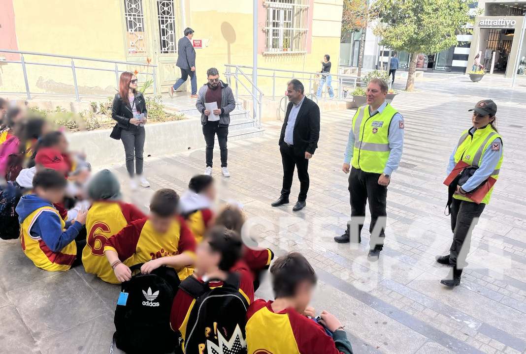 Την Τετάρτη 27/3, μαθήτριες και μαθητές του 30ου Δημοτικού Σχολείου βρέθηκαν στο κέντρο της πόλης και μαζί με τον αρμόδιο Αντιδήμαρχο Μανόλη Χαιρέτη και στελέχη της Δημοτικής Αστυνομίας περπάτησαν στους δρόμους και τους πεζοδρόμους, ενημερώθηκαν για τα σήματα του ΚΟΚ και εντόπισαν παράνομα σταθμευμένα οχήματα, αφήνοντας τις δικές τους «κλήσεις».