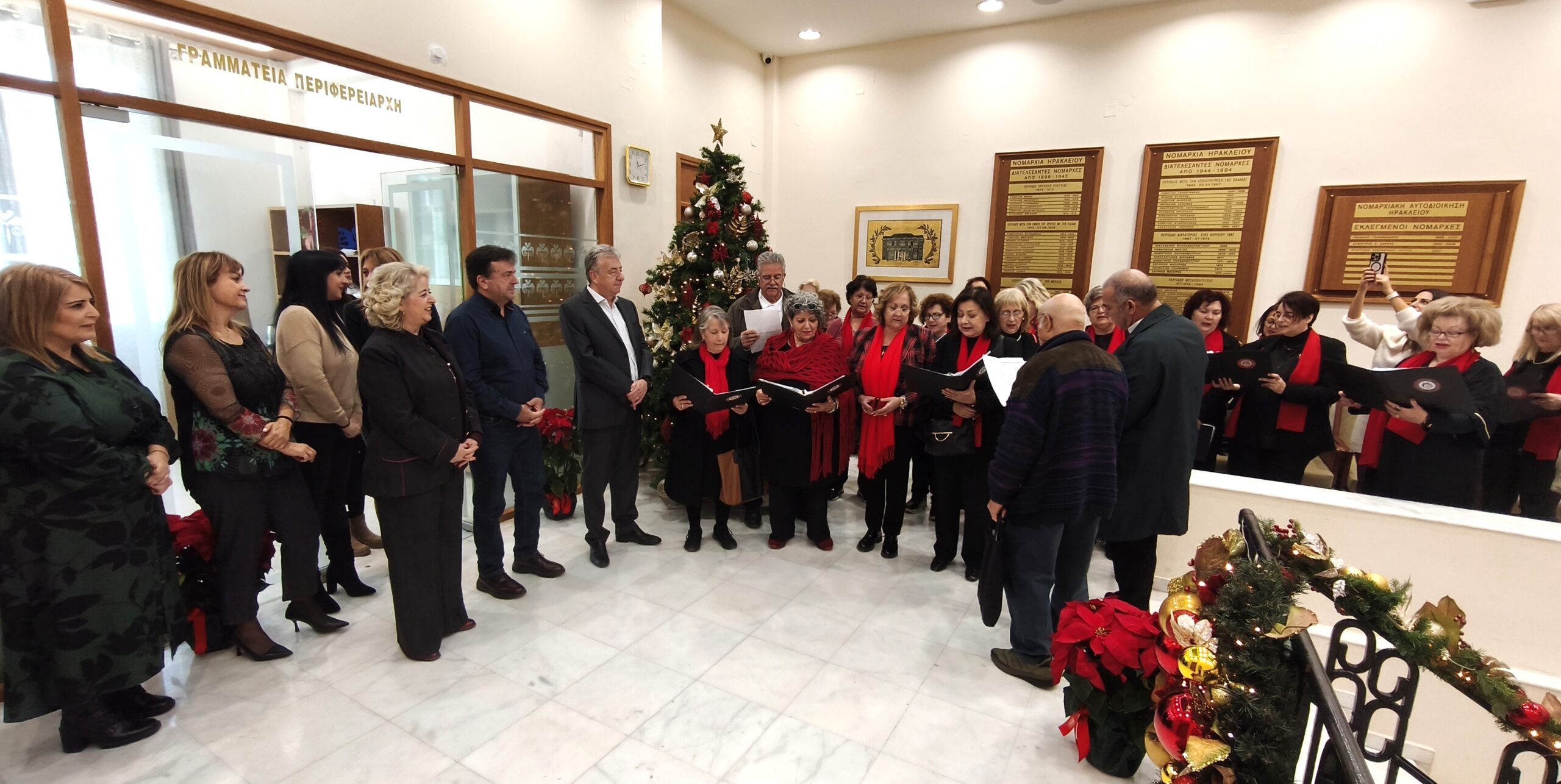 Στην συνέχεια τα παραδοσιακά κάλαντα του Βυζαντίου, της Ερυθραίας της Μ. Ασίας και των Αλατσάτων έψαλαν στον Περιφερειάρχη Κρήτης Σταύρο Αρναουτάκη τα μέλη του συλλόγου Αλατσατιανών ν. Ηρακλείου με επικεφαλής την Πρόεδρο Χριστίνα Χατζηαδάμ. Την χορωδία διεύθυνε ο μαέστρος Νίκος Αντωνακάκης. Ο Περιφερειάρχης ευχαρίστησε την Πρόεδρο και τα μέλη του συλλόγου για τα παραδοσιακά κάλαντα που έψαλε ο σύλλογος και για την δουλειά που κάνει ο σύλλογος για την διάσωση της παράδοσης της Μ. Ασίας και ευχήθηκε καλές γιορτές, καλά Χριστούγεννα. Παρόντες ήταν επίσης ο Αντιπεριφερειάρχης Ηρακλείου Νίκος Συριγωνάκης και η Εντεταλμένη Περιφερειακή Σύμβουλος Παιδείας Δια Βίου Μάθησης, Ελένη Μαράκη-Μπελαδάκη.