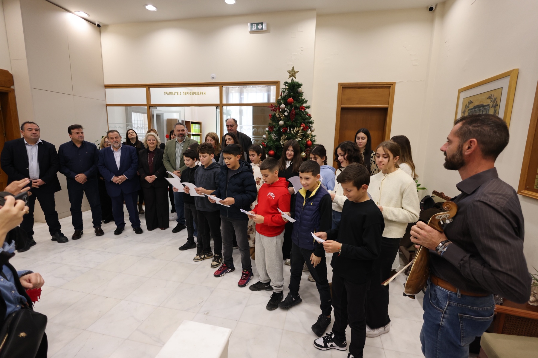 Οι μαθητές της ΣΤ΄ τάξης του Δημοτικού Σχολείου Καστελλίου επισκέφθηκαν σήμερα Δευτέρα την Περιφέρεια Κρήτης όπου έψαλαν τα πρωτοχρονιάτικα κάλαντα των Κρητών στρατιωτών των Βαλκανικών Πολέμων 1912-1913.