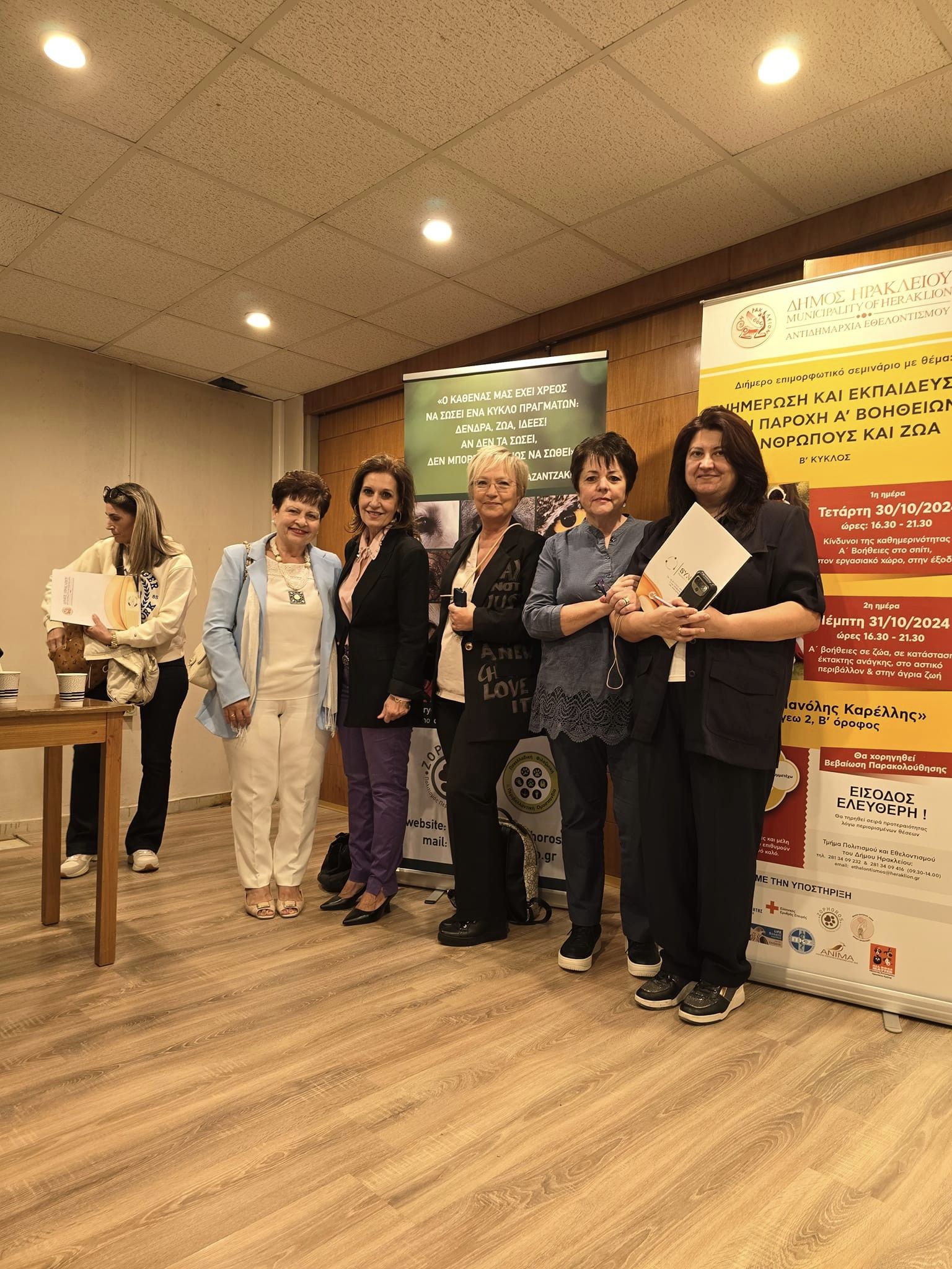 Το σεμινάριο παρευρέθηκαν και απηύθυναν χαιρετισμό, ο Αντιπεριφερειάρχης Κρήτης, Κοινωνικής Πολιτικής & Αλληλεγγύης Στέλιος Βοργιάς, ο Πρόεδρος του Ελληνικού Ερυθρού Σταυρού – Περιφερειακό Τμήμα Ηρακλείου και Αντιδήμαρχος Καθαριότητας Περιβάλλοντος και Ενέργειας Νίκος Γιαλιτάκης και η Αντιδήμαρχος Πολιτισμού Ρένα Παπαδάκη – Σκαλίδη.