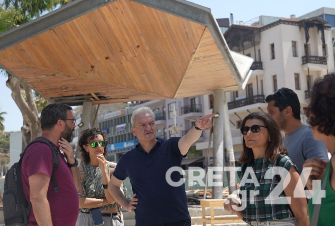 Ο Δήμαρχος Ηρακλείου Αλέξης Καλοκαιρινός και ο Αντιδήμαρχος Τεχνικών Έργων Γιώργος Σισαμάκης πραγματοποίησαν νωρίτερα το μεσημέρι αυτοψία στον χώρο της Πλατείας προκειμένου να επιθεωρήσουν το δυτικό της τμήμα, λίγο πριν παραδοθεί στο κοινό.