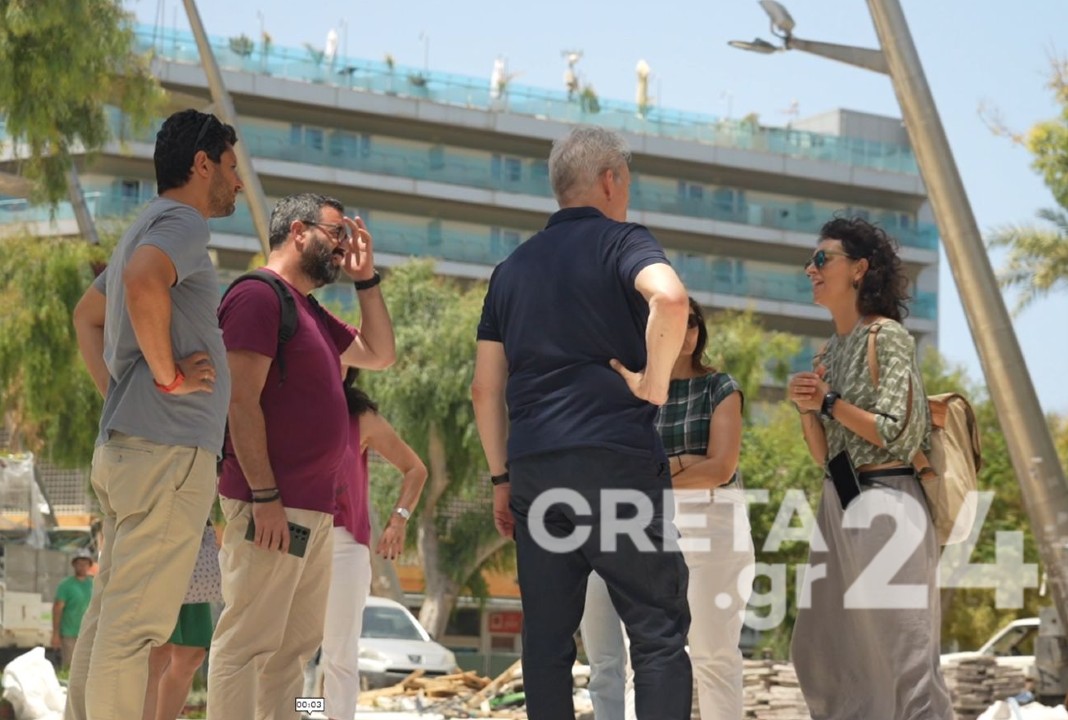Ο Δήμαρχος Ηρακλείου Αλέξης Καλοκαιρινός και ο Αντιδήμαρχος Τεχνικών Έργων Γιώργος Σισαμάκης πραγματοποίησαν νωρίτερα το μεσημέρι αυτοψία στον χώρο της Πλατείας προκειμένου να επιθεωρήσουν το δυτικό της τμήμα, λίγο πριν παραδοθεί στο κοινό.