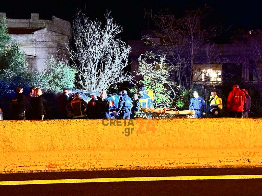 Ο οδηγός σε κατάσταση σοκ μεταφέρθηκε με ασθενοφόρο του ΕΚΑΒ στο Βενιζέλειο Νοσοκομείο Ηρακλείου, με ελαφρά τραύματα, όπως και η γυναίκα που ήταν συνοδηγός.