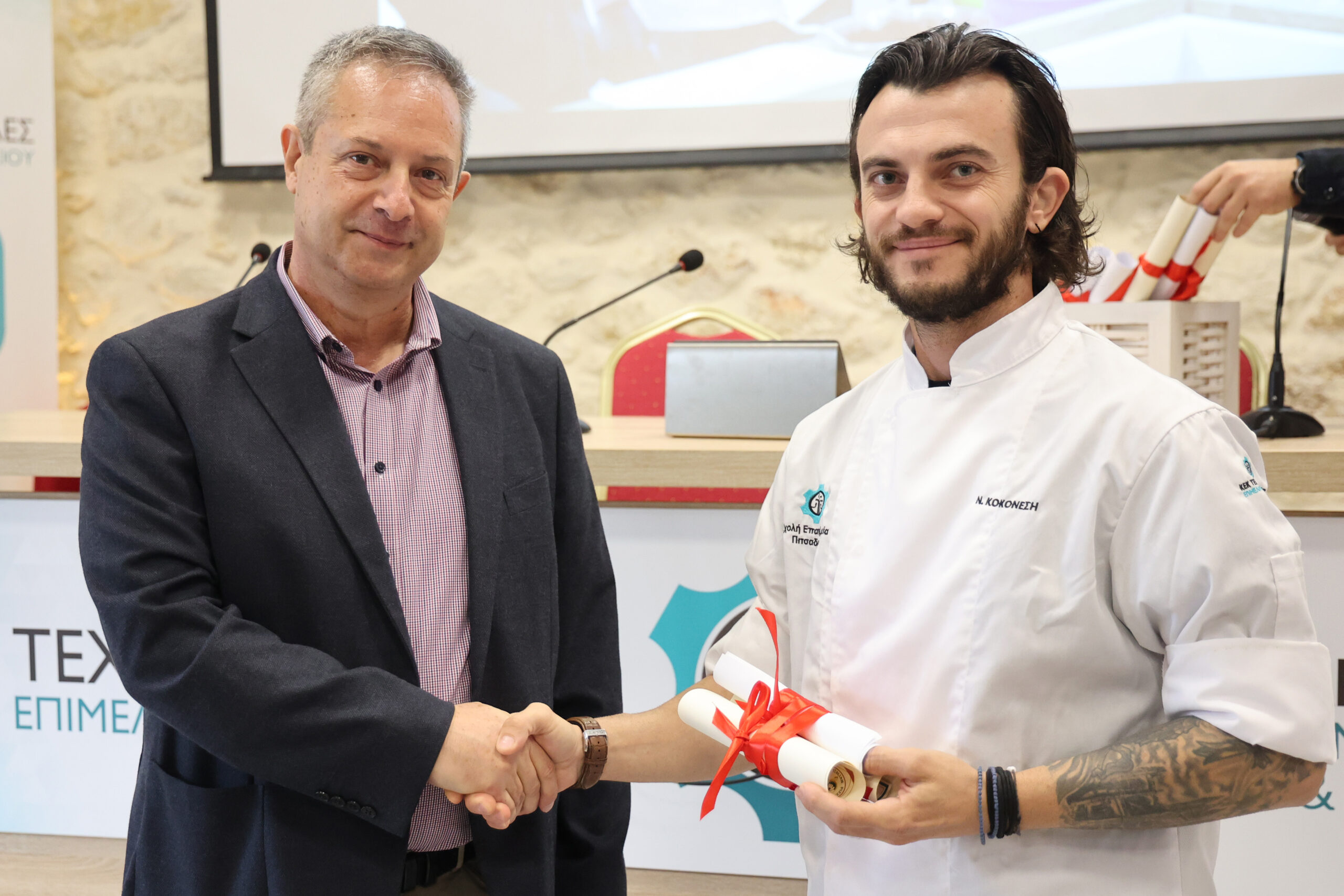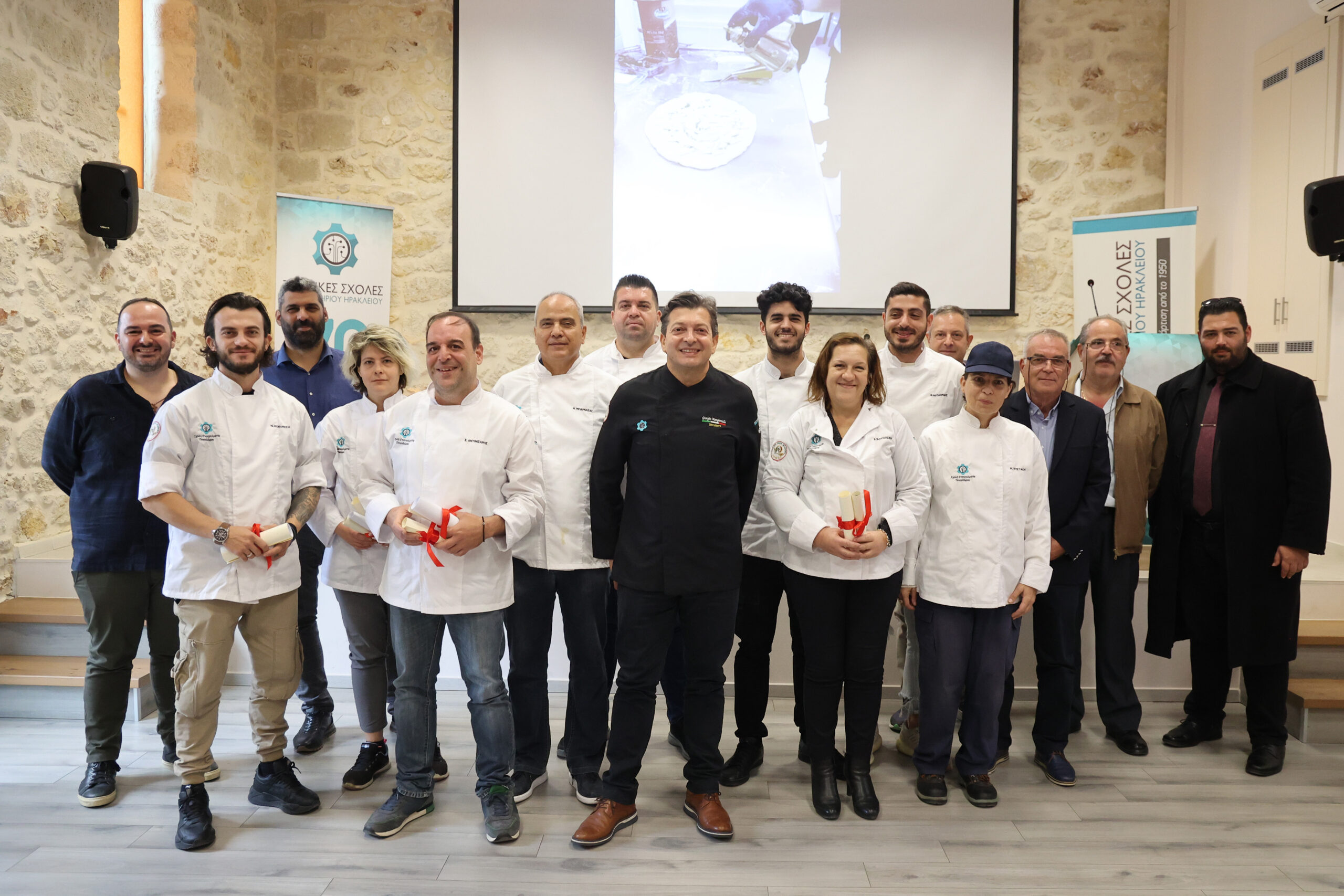 Στην απονομή των πρώτων πιστοποιητικών συμμετείχε επίσης, ο Διευθυντής των ΤΕΧΝΙΚΩΝ ΣΧΟΛΩΝ κ. Μιχάλης Καθαράκης, ο Οικονομικός Επόπτης κ. Βαγγέλης Τζαγκαράκης, ο Καθηγητής του ΕΛΜΕΠΑ κ. Μανώλης Κουδουμάς και ο Καθηγητής της Σχολής κ. Giorgio Manganiello. Χορηγός πρώτων υλών της Σχολής ήταν η Simply Foods Κουτσουμπής Γιάννης.