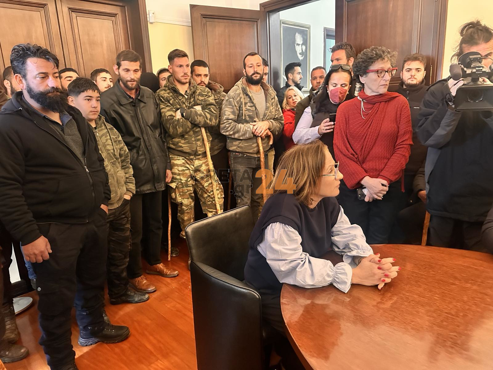 Στην Αποκεντρωμένη Διοίκηση Κρήτης στο Ηράκλειο, συνεχίζεται η κινητοποίηση των αγροτοκτηνοτρόφων, μετά την αποχώρησή τους από το αεροδρόμιο «Νίκος Καζαντζάκης».