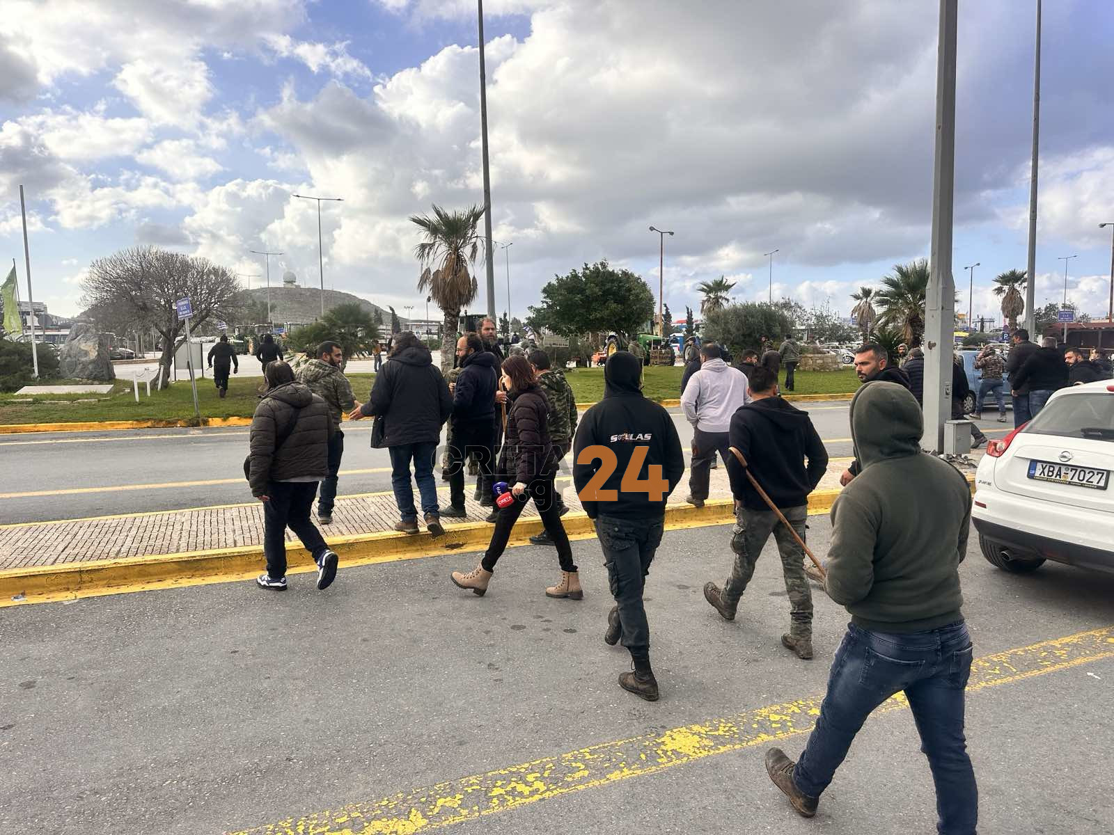 Αγροτοκτηνοτρόφοι, μελισσοκόμοι και αλιείς από το Ηράκλειο, το Ρέθυμνο και το Λασίθι παρέμειναν εντός και εκτός του αεροδρομίου Ηρακλείου κατά τη διάρκεια όλης της νύχτας.