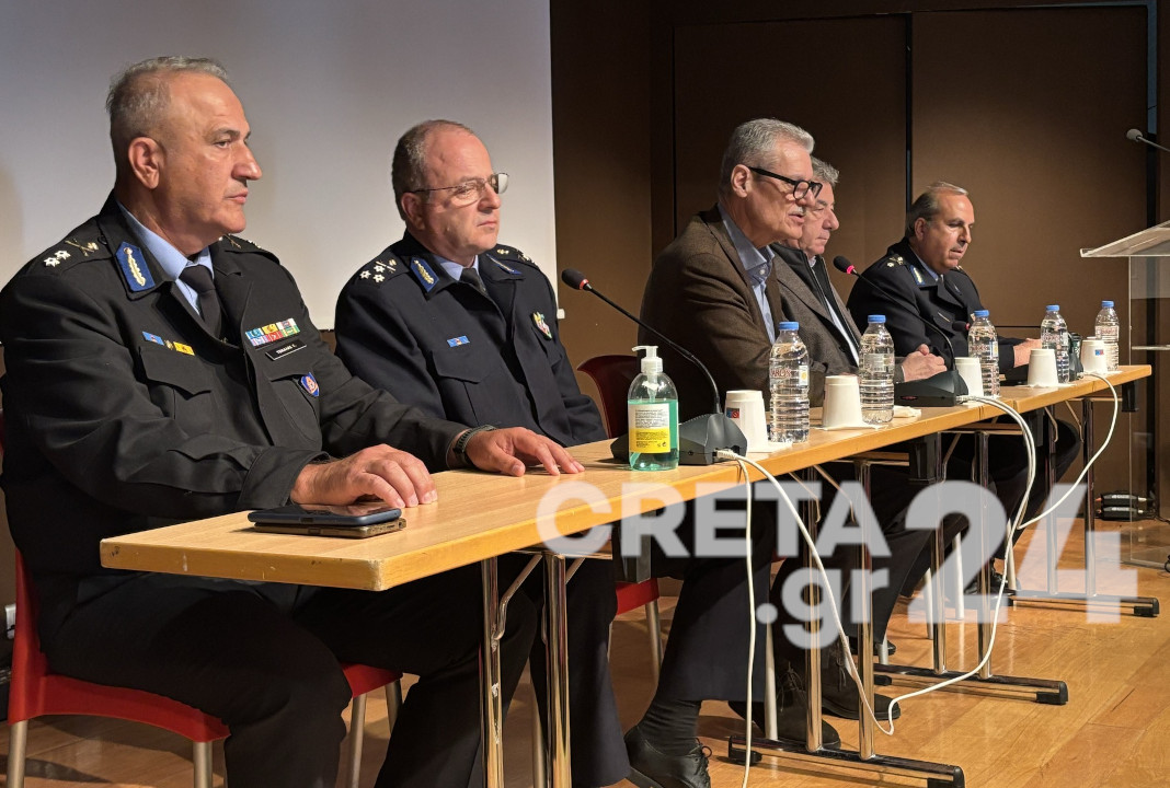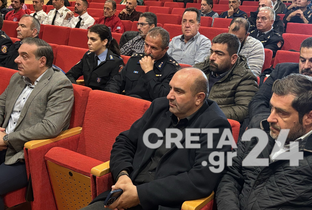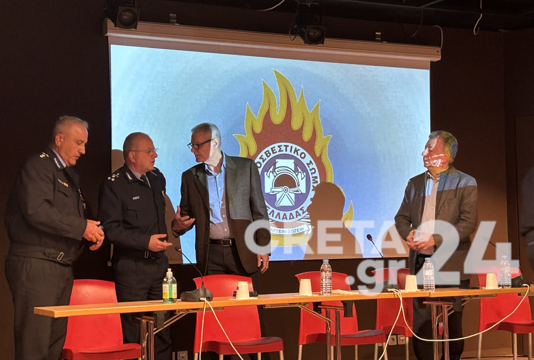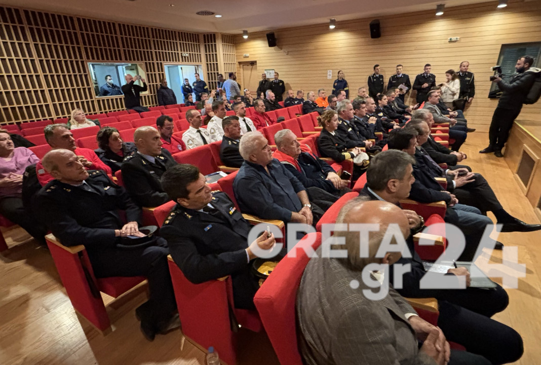 Σύσκεψη για θέματα Πολιτικής Προστασίας στην Κρήτη πραγματοποιείται στο Πολιτιστικό Συνεδριακό Κέντρο Ηρακλείου παρουσία του Υφυπουργού Κλιματικής Κρίσης και Πολιτικής Προστασίας, Ευάγγελου Τουρνά και του Αρχηγού του Πυροσβεστικού Σώματος, Υποστράτηγου Θεόδωρου Βάγια, στο πλαίσιο της διήμερης επίσκεψής του στο νησί.