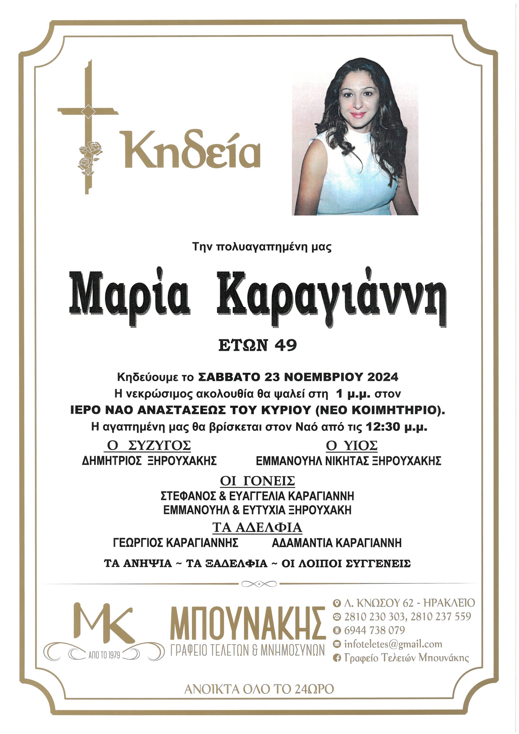 Το άρθρο “Ηράκλειο: Θρήνος για την Μαρία που «έφυγε» νωρίς“, δημοσιεύθηκε για πρώτη φορά στο CRETA24.