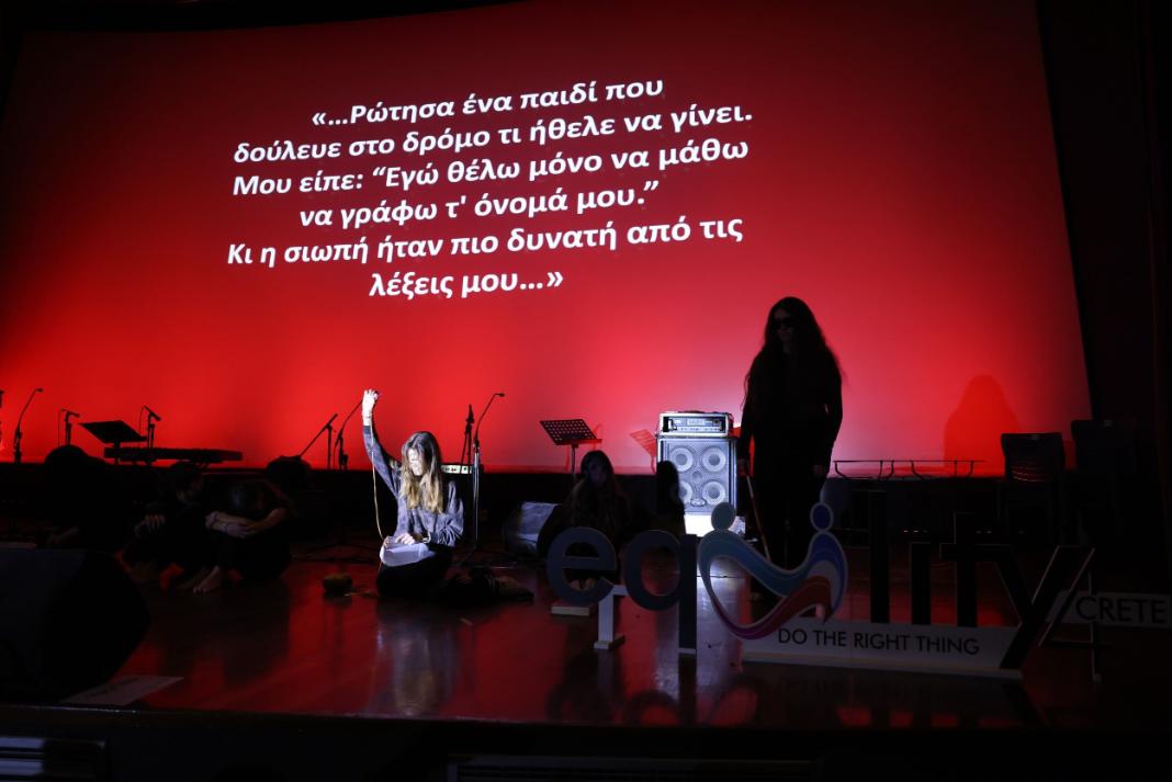 Η Αντιπεριφερειάρχης Πολιτισμού και Ισότητας Γεωργία Μηλάκη έκανε λόγο για μια διοργάνωση που αποτελεί γιορτή για τα ανθρώπινα δικαιώματα με τη συμμετοχή 60 σχολείων δευτεροβάθμιας εκπαίδευσης, στην διάρκεια της οποίας τα παιδιά παρουσιάζουν αυτό που έχουν δημιουργήσει στις τάξεις τους, με τη βοήθεια των εκπαιδευτικών τους. Όπως σημείωσε, «η Περιφέρεια Κρήτης πρωτοπορεί με δράσεις σε θέματα ισότητας, έμφυλης βίας, διακρίσεων, συμπερίληψης και ανθρωπίνων δικαιωμάτων. Δίνουμε το βήμα στους νέους ανθρώπους, στα παιδιά που είναι η γενιά του αύριο και θα καθορίσουν την πορεία της κοινωνίας, για να είναι μπροστά και να μας παρουσιάσουν όλα εκείνα που έχουν δουλέψει και καταφέρει μέσα από την εκπαίδευση», επεσήμανε.