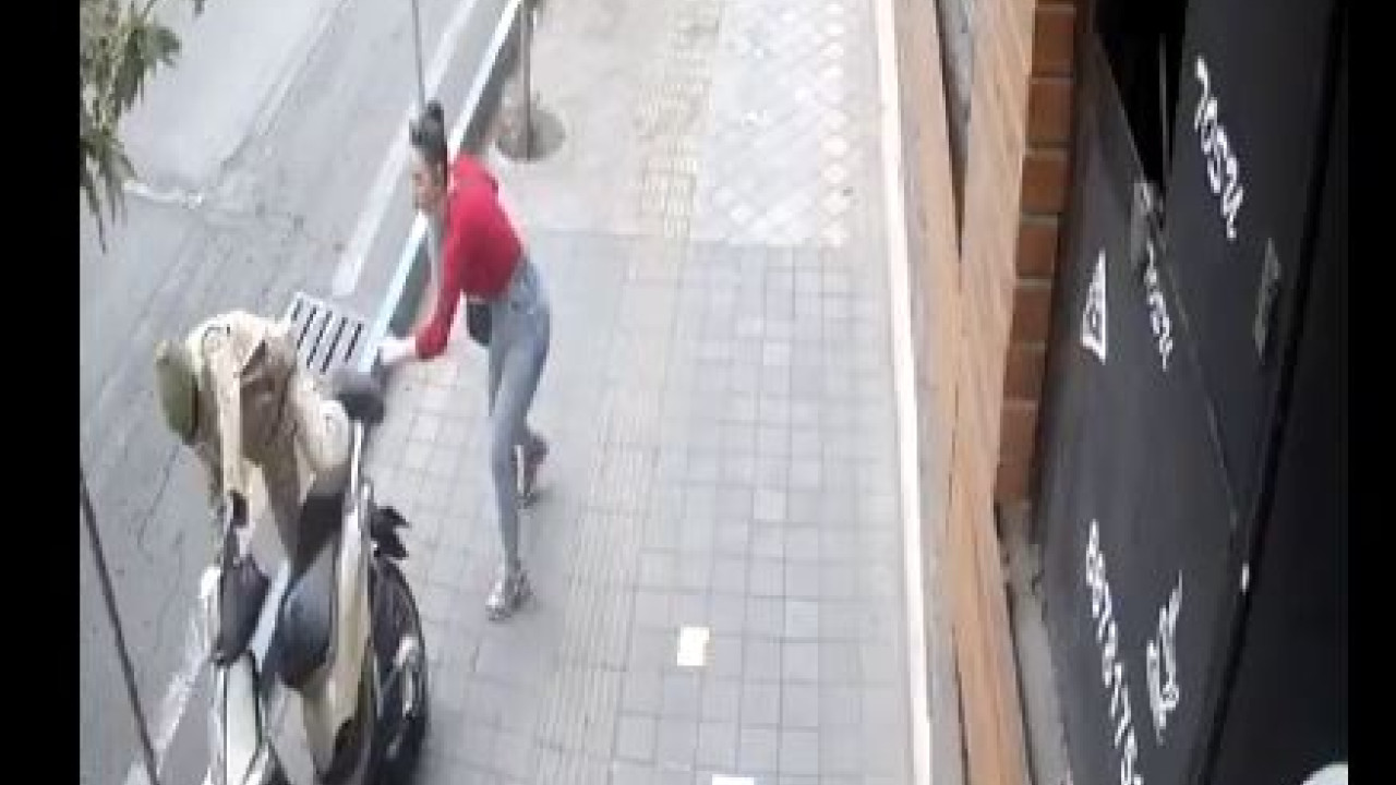Βίντεο δείχνει έναν άνδρα ντυμένο με στρατιωτική στολή να πλησιάζει την κοπέλα από πίσω με μια μοτοσικλέτα και να την παρενοχλεί